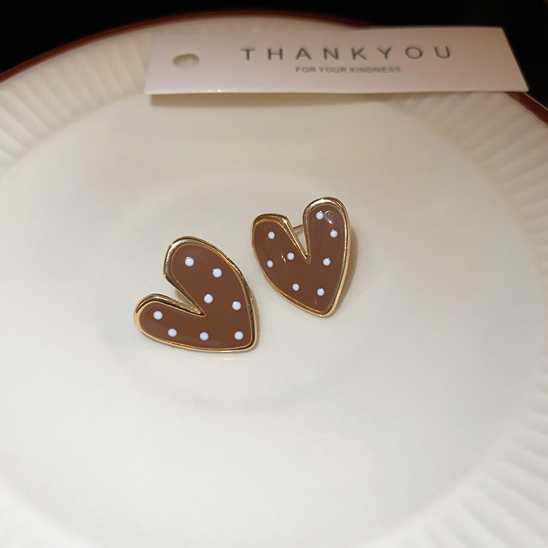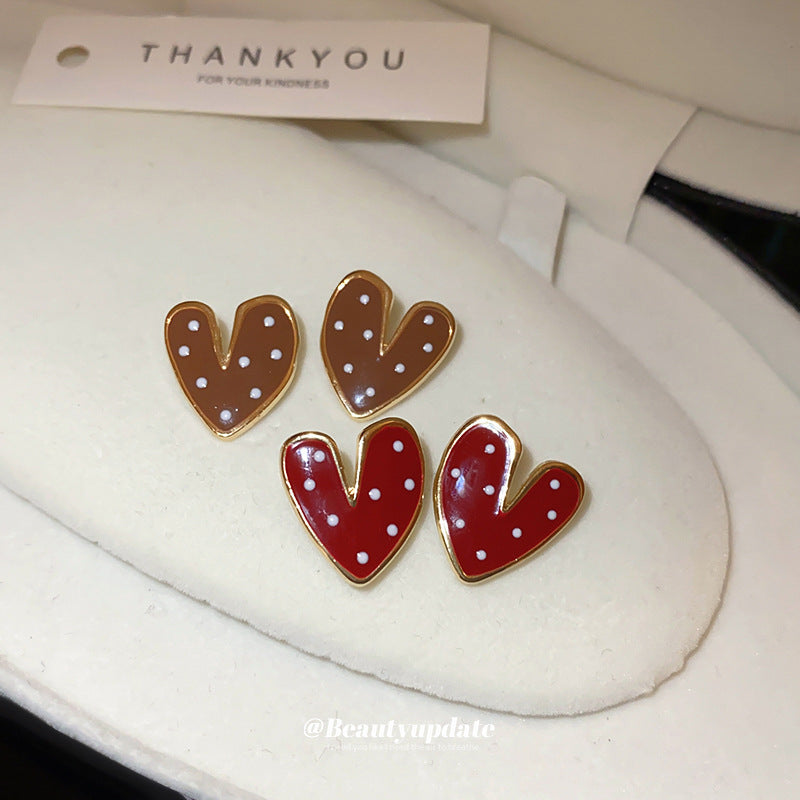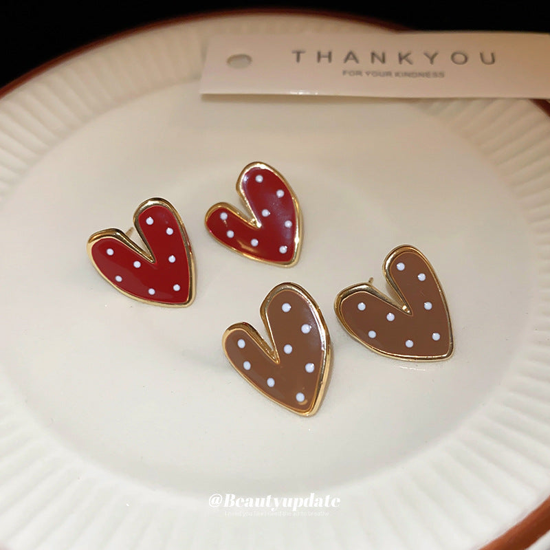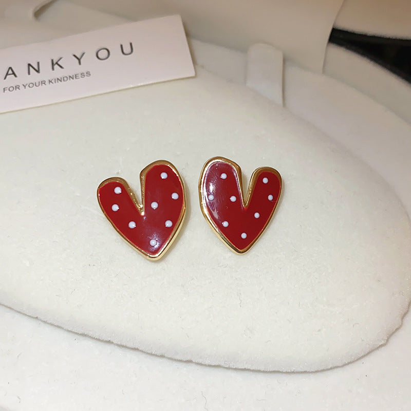 A廠【HE23053】925銀針安可拉紅滴油波點愛心耳環女韓系小眾高級感耳環復古精緻耳飾24.10-3