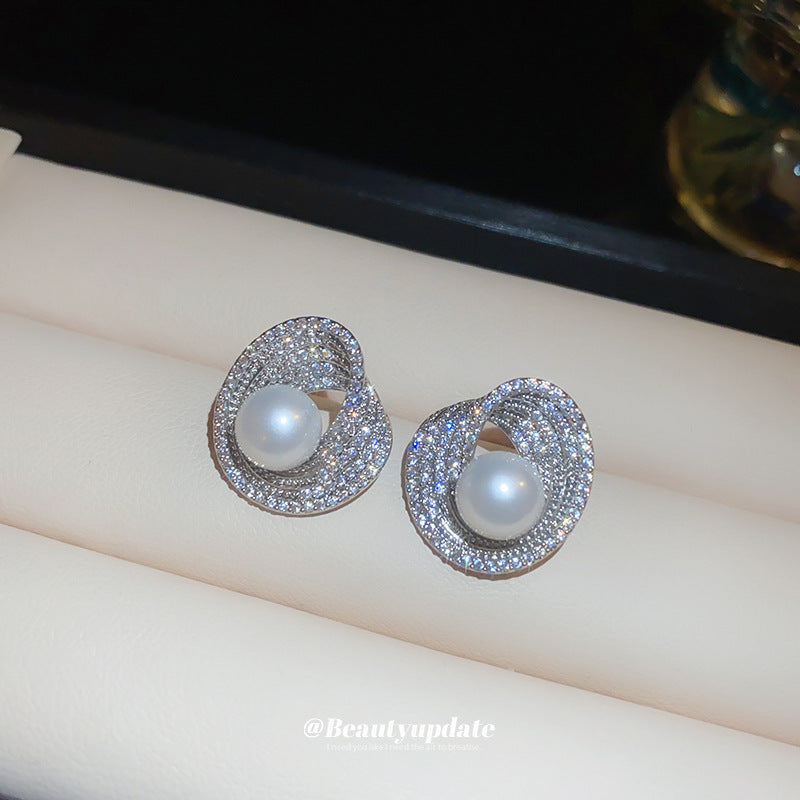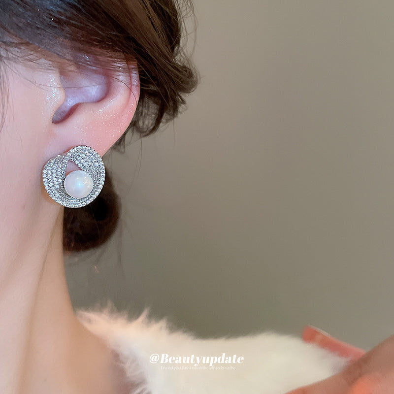 A廠【HE23057】925銀針鋯石不規則珍珠型耳環時尚冷淡風ins小眾耳環輕奢高級感耳飾24.10-3