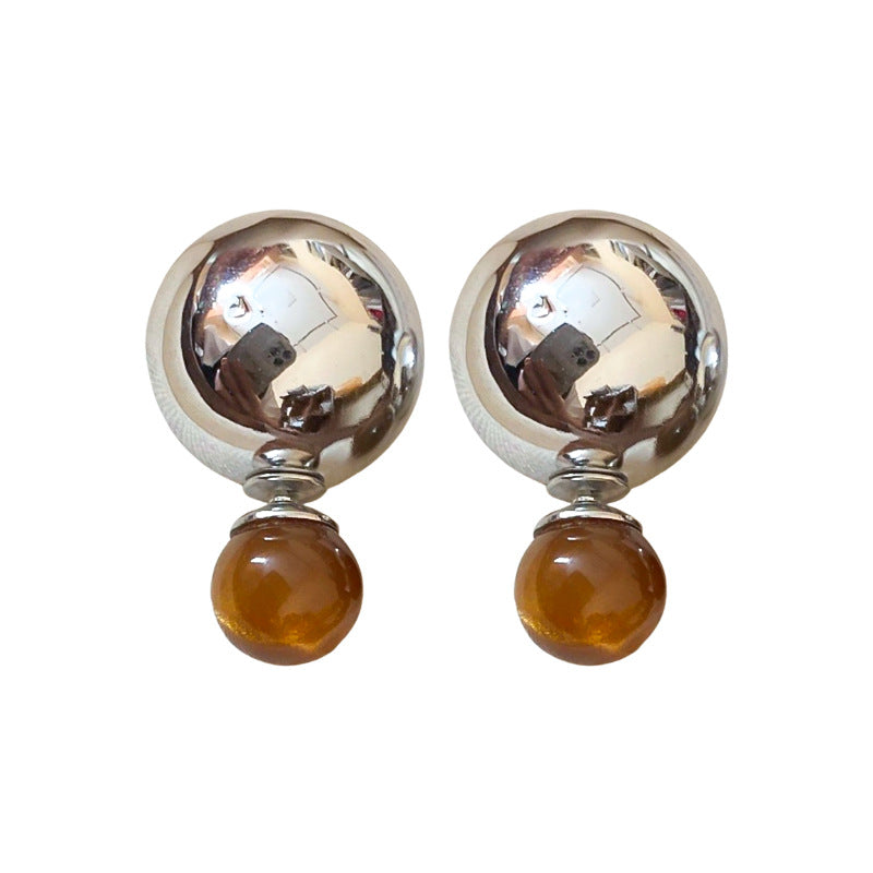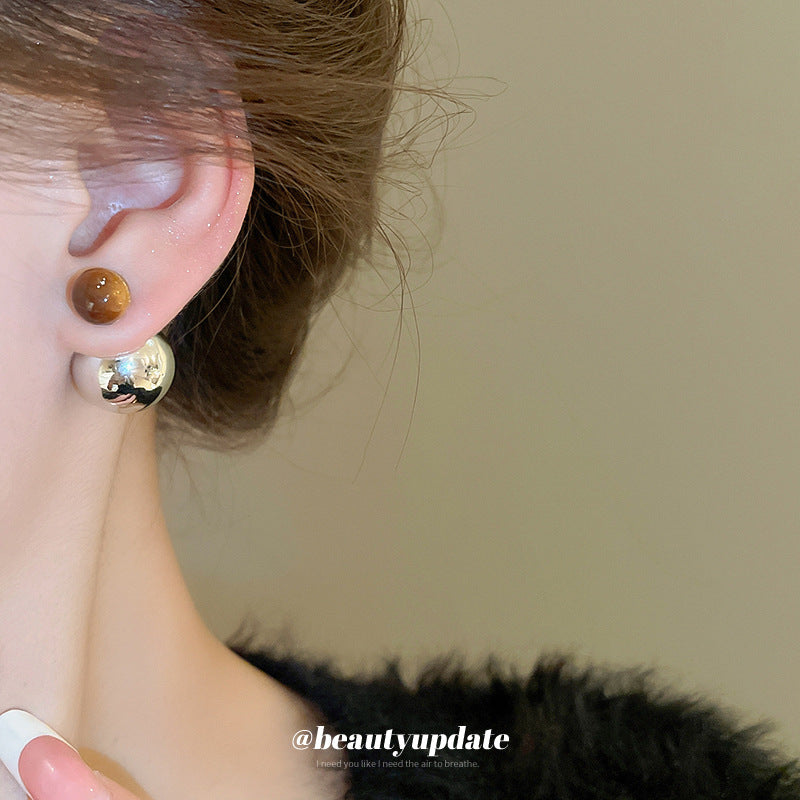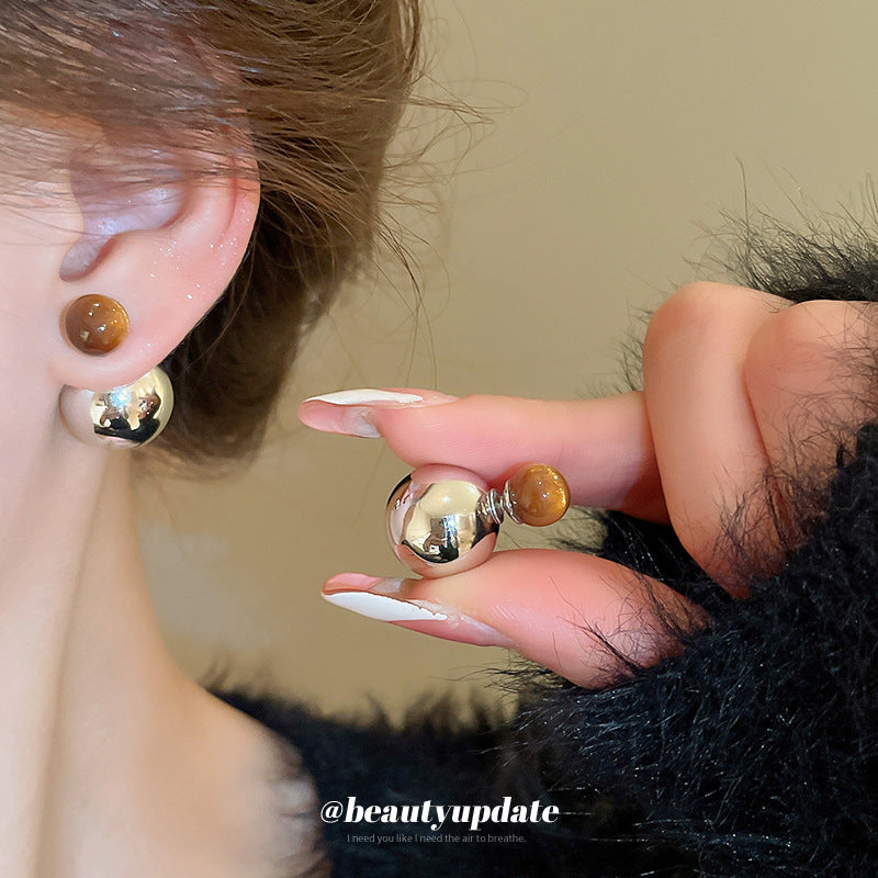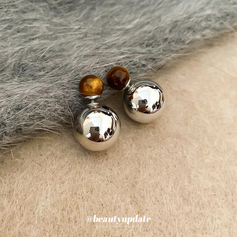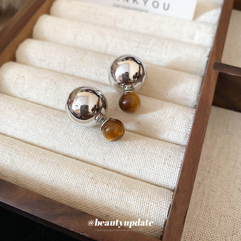 A廠【HE23070】一款兩戴式圓形虎眼石款耳環復古美拉德風耳環時尚耳環925銀針高級感 24.10-4