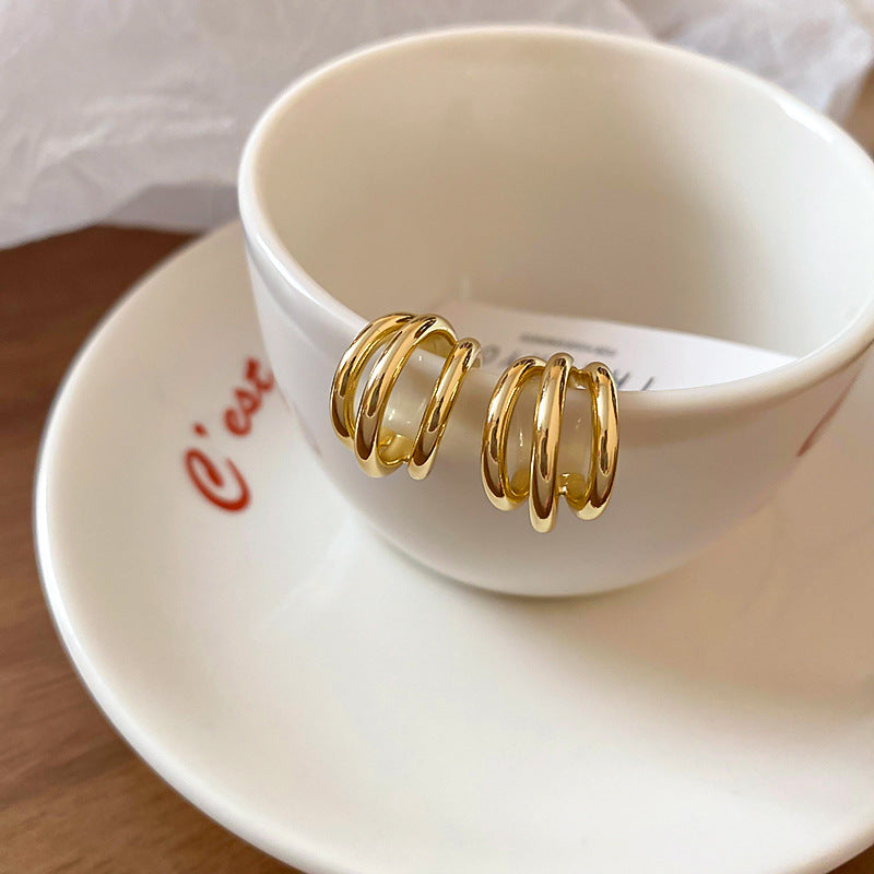A廠【HE23178】真金電鍍925銀針多層金屬C型耳環女冷淡風個性耳環時尚氣質耳飾 24.10-4
