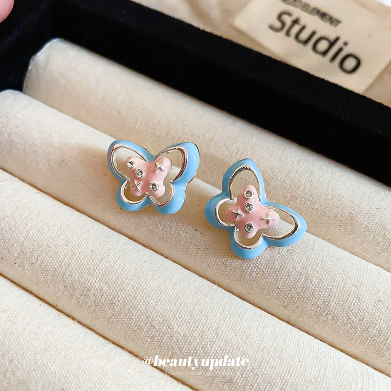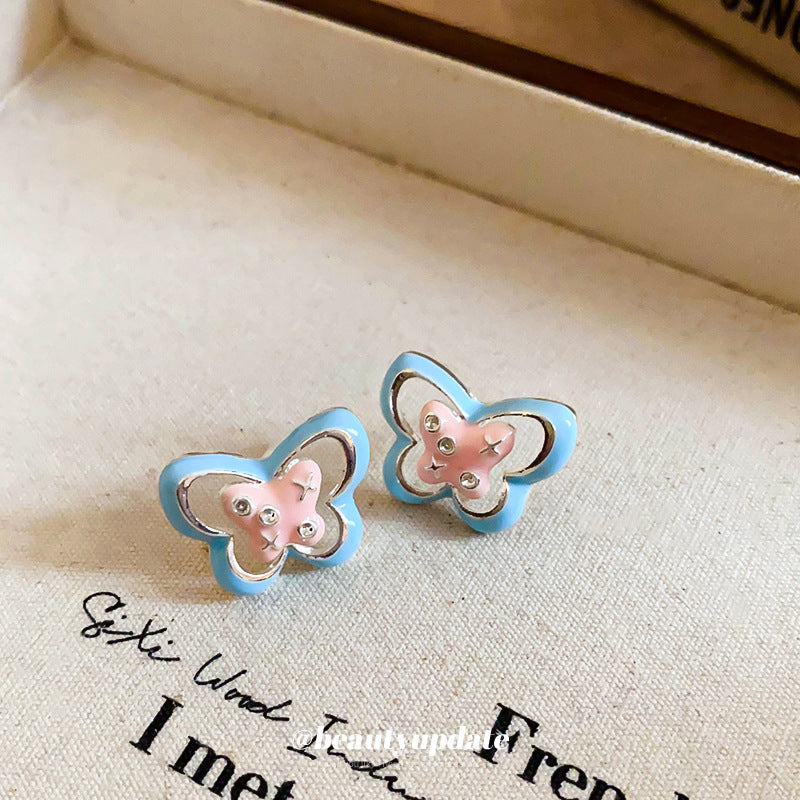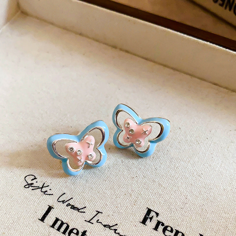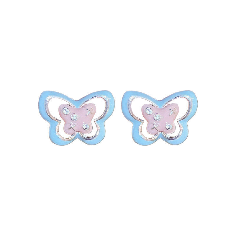 A廠【HE23188】925銀針滴油蝴蝶圓形鏤空耳環甜美少女心耳環可愛設計感簡約耳環 24.10-4