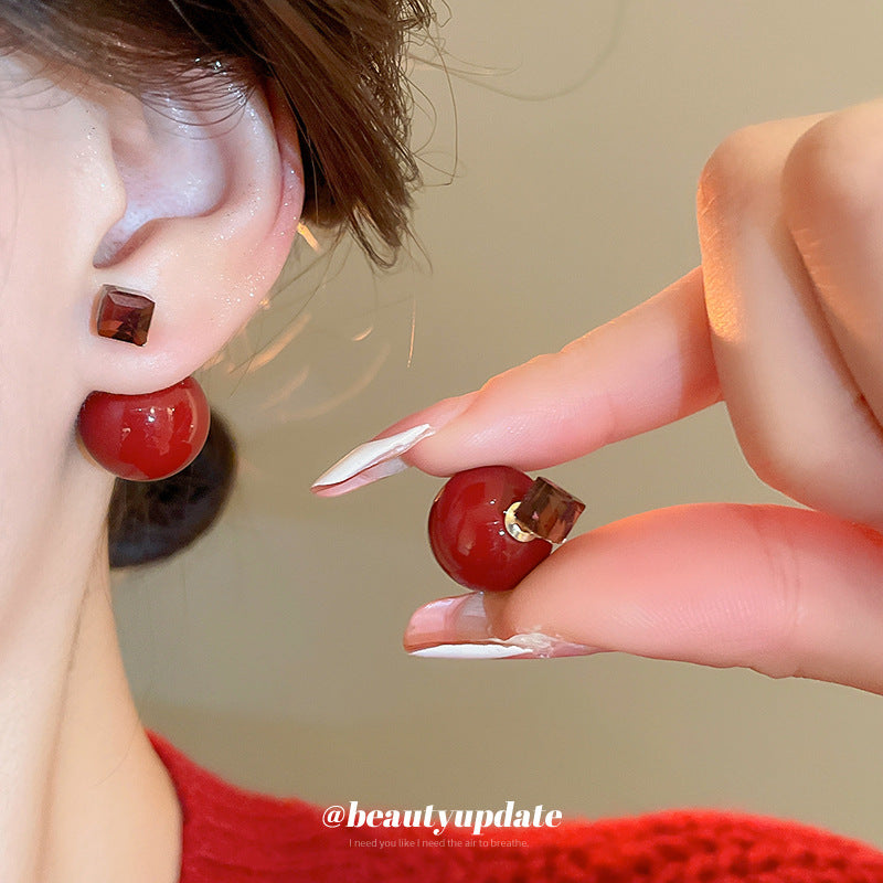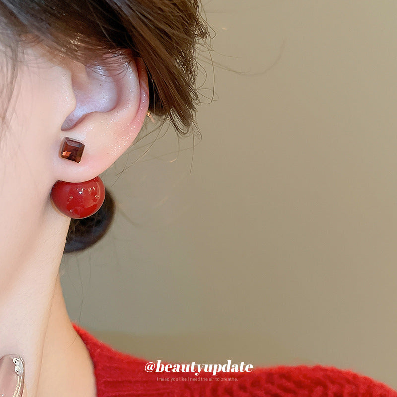 A廠【HE23232】925銀針鑲鑽方形圓形耳環一款兩戴式簡約耳環時尚氣質耳飾輕奢高級感 24.10-4