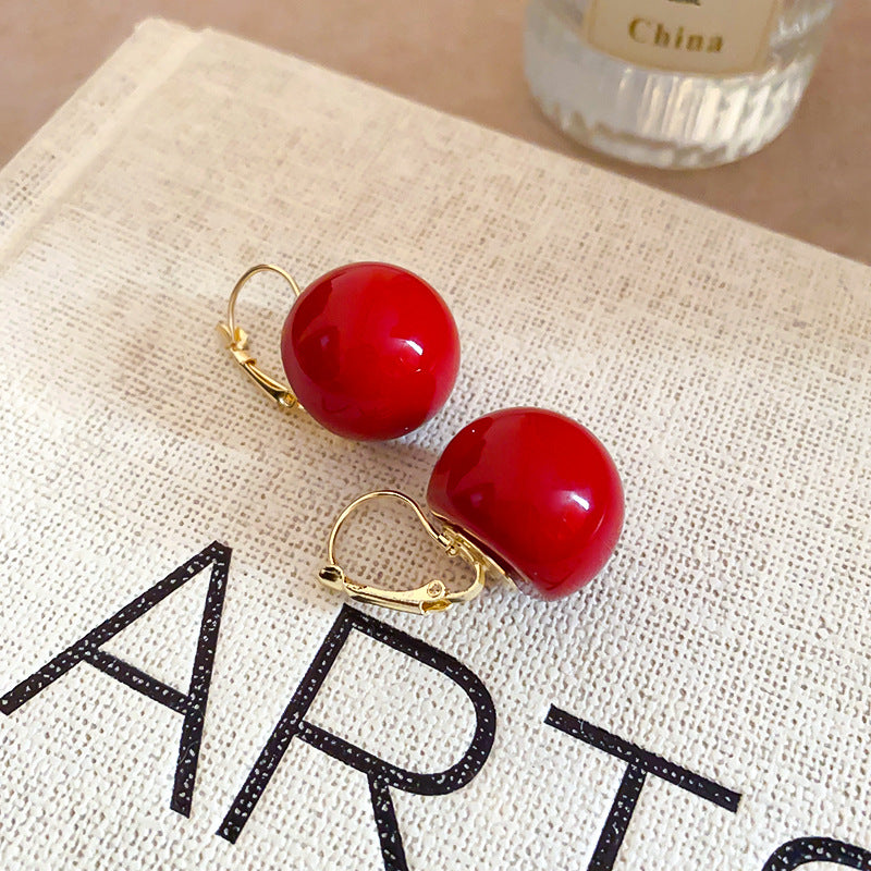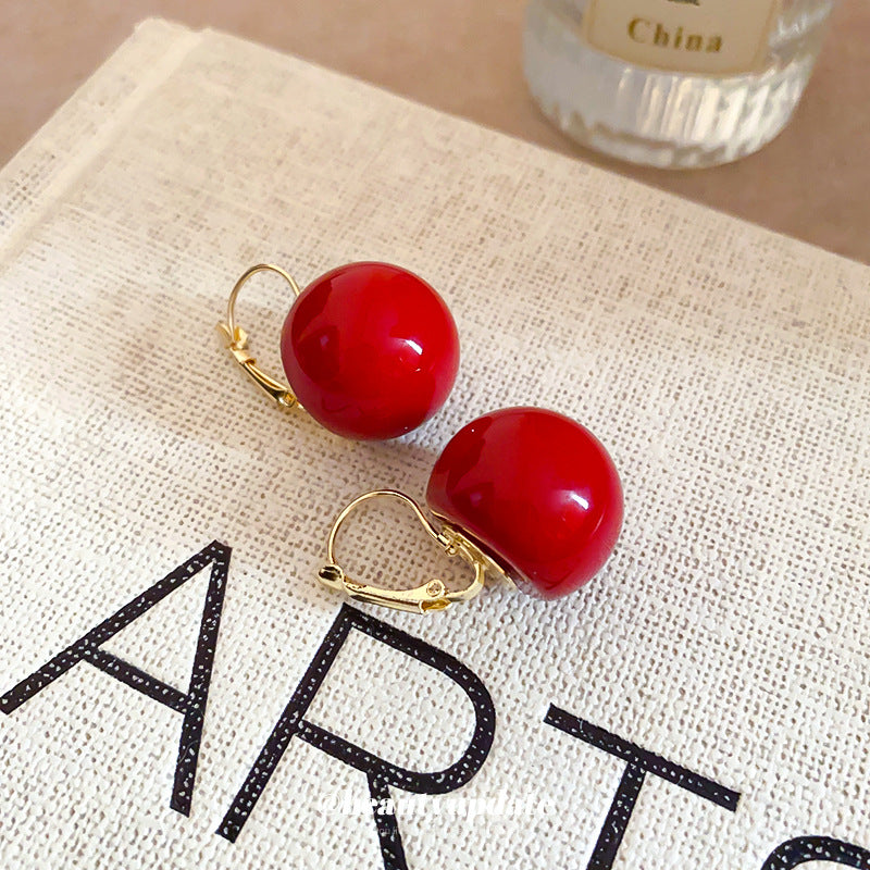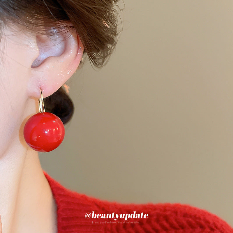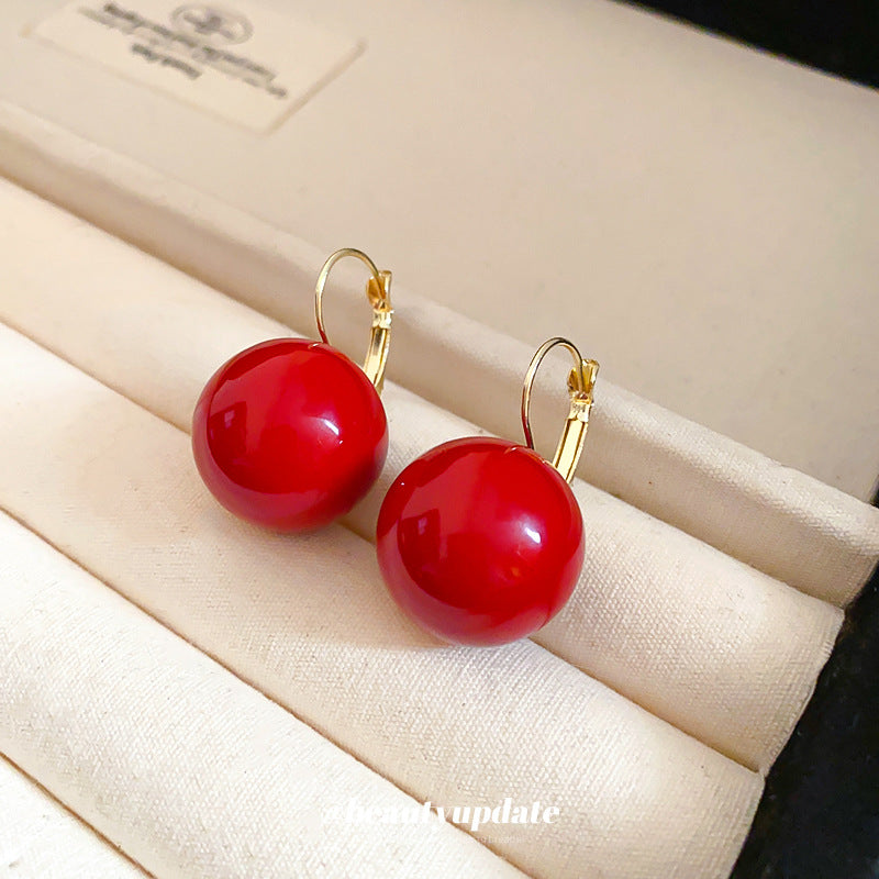 A廠【HE23237】紅色大號珍珠圓形耳環小眾設計感簡約耳環時尚氣質耳飾輕奢高級感 24.10-4