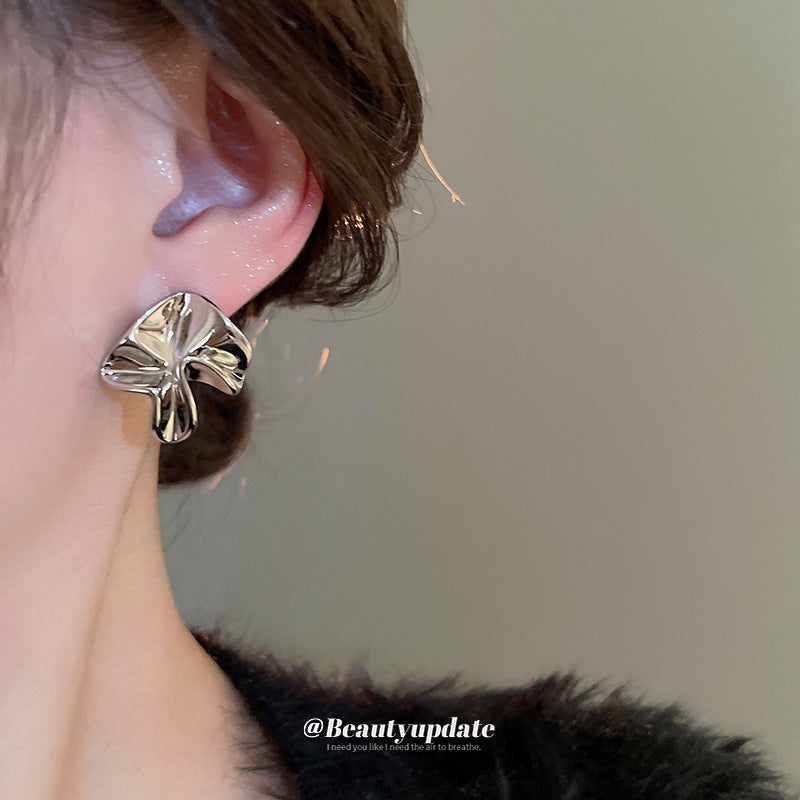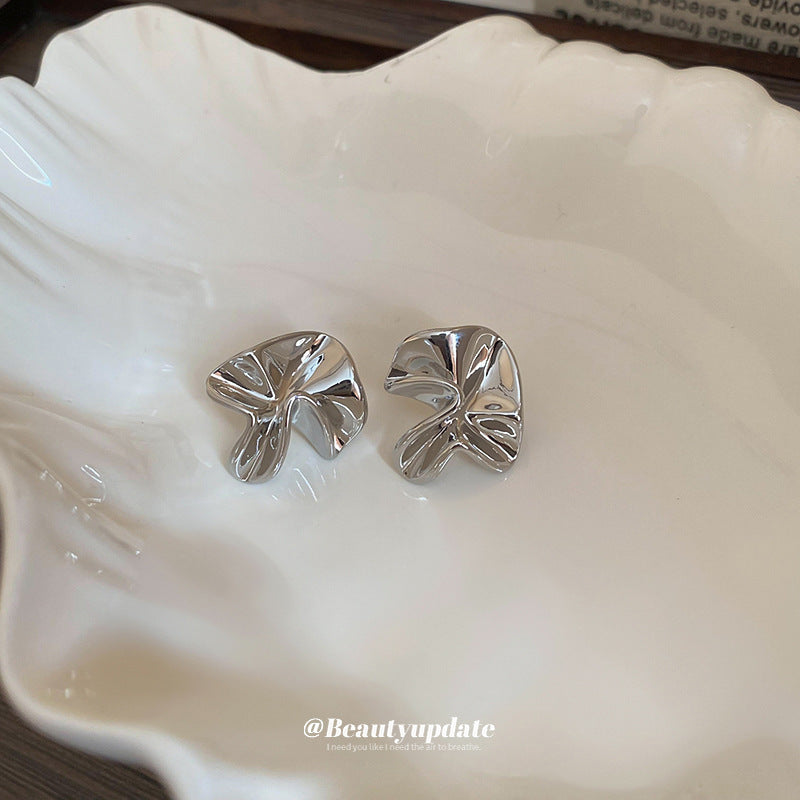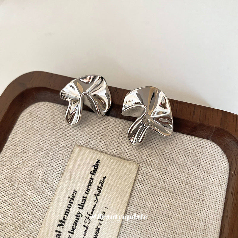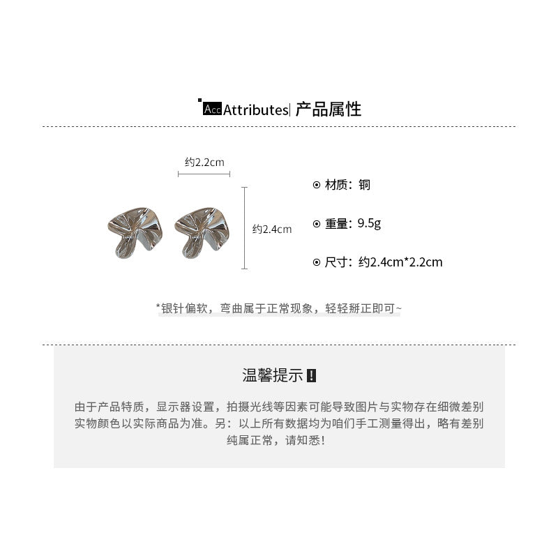 A廠【HE23248】925銀針不規則褶皺花朵耳環歐美高級感藝術氣息耳環時尚簡約百搭耳環 24.10-4