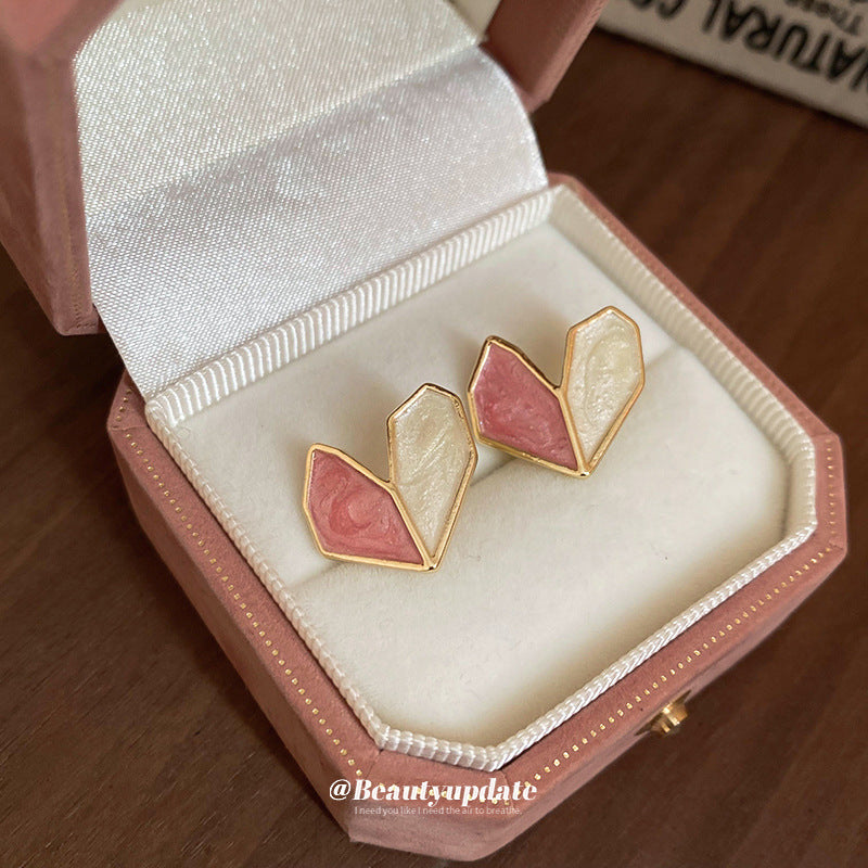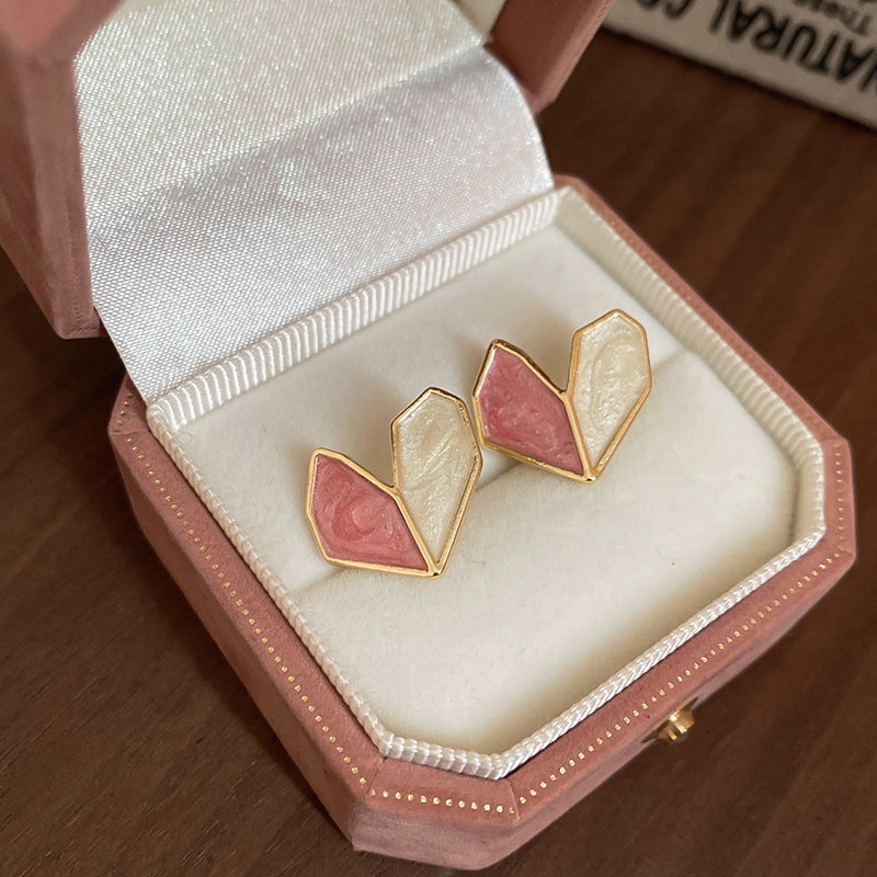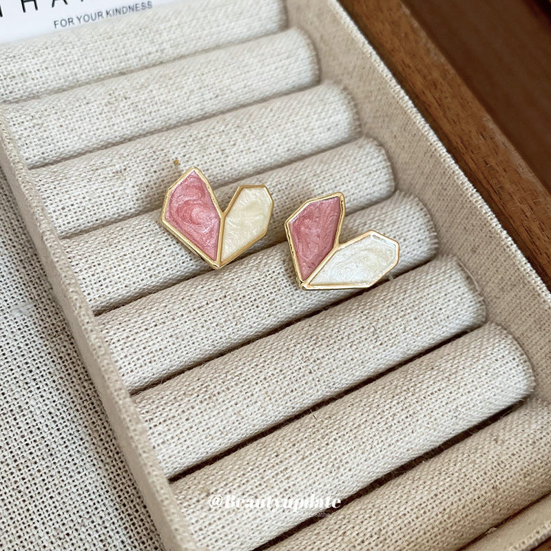 A廠【HE23250】925銀針滴油愛心撞色耳環韓國潮流簡約耳環粉色少女心時尚通勤耳環 24.10-4