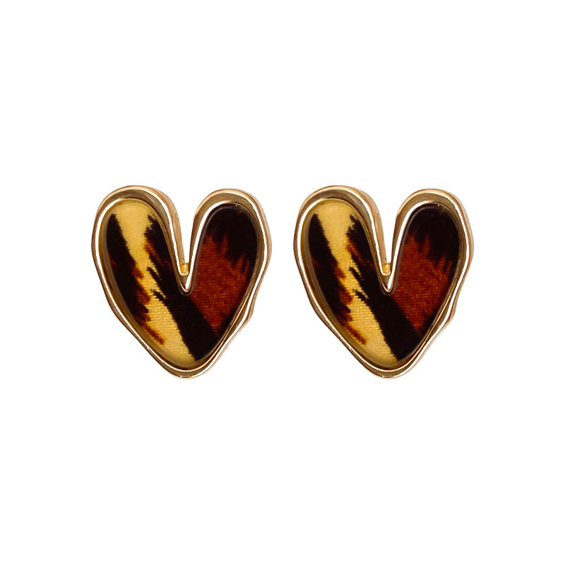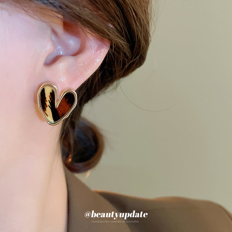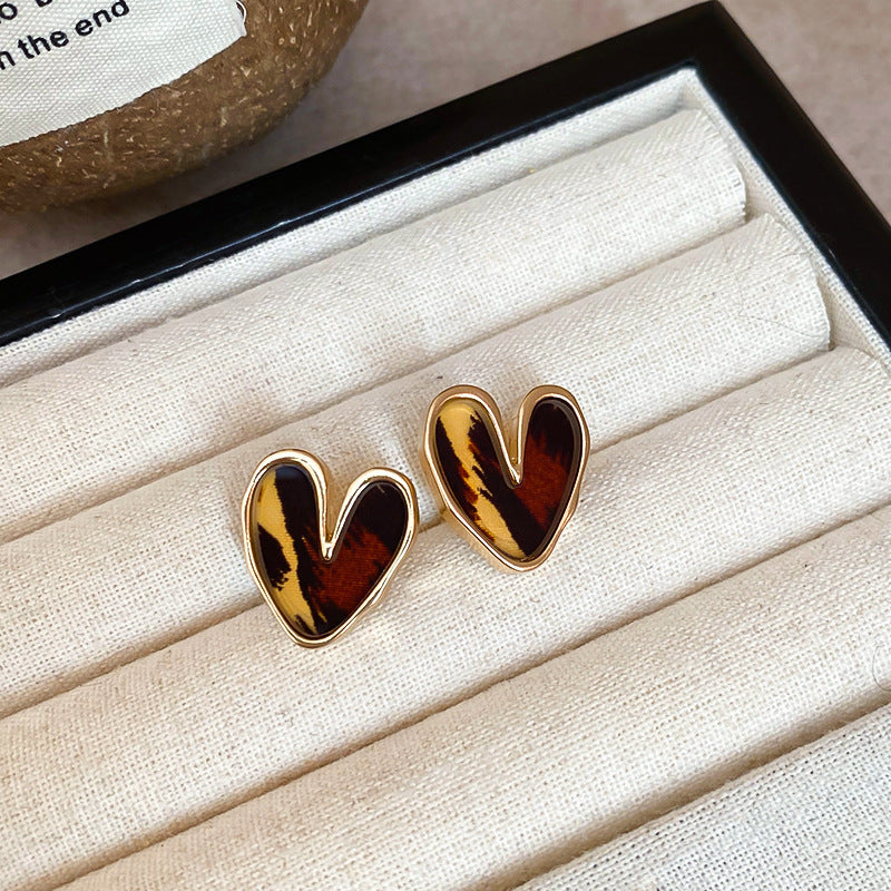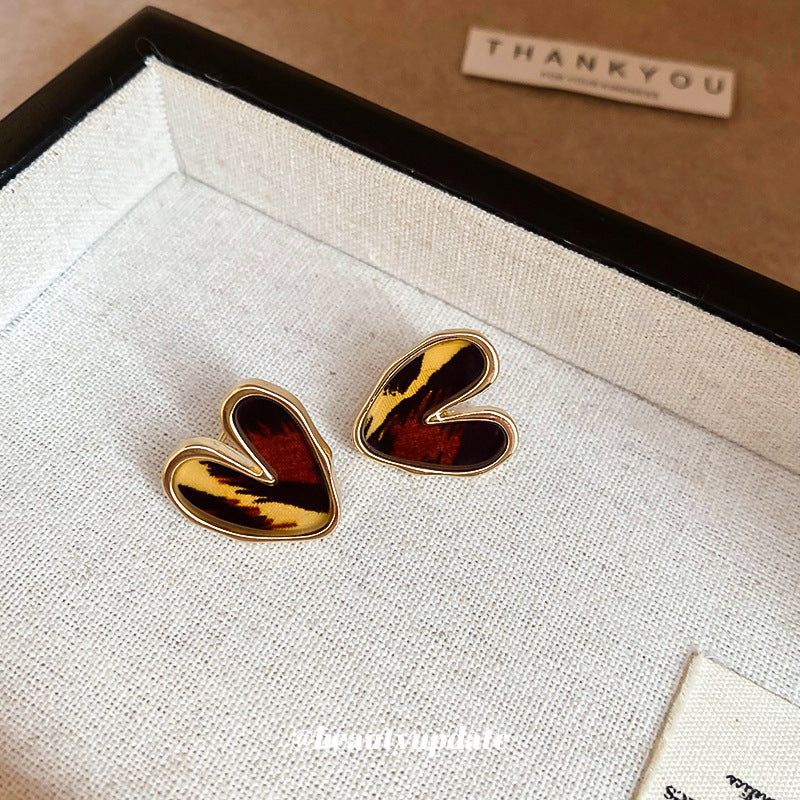 A廠【HE23316】925銀針愛心豹紋樹脂耳環女復古小眾個性耳環耳環輕奢高級感秋冬 24.11-1