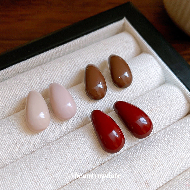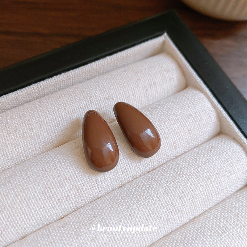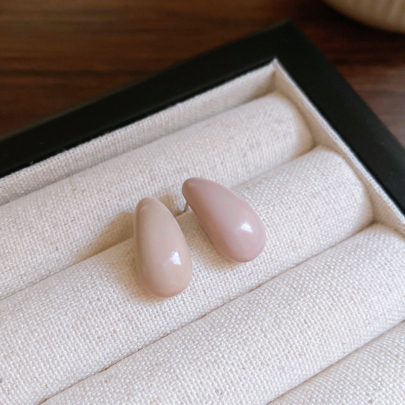 A廠【HE23347】925銀針彎曲水滴豆豆耳環法式簡約小巧耳環時尚氣質耳飾輕奢高級感女 24.11-1