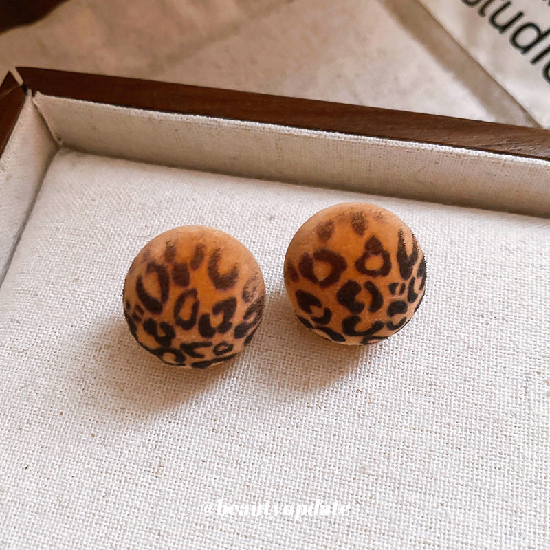 A廠【HE23427】925銀針植絨豹紋圓耳釘女百搭復古耳環時尚氣質耳環輕奢高級感秋冬 24.11-2