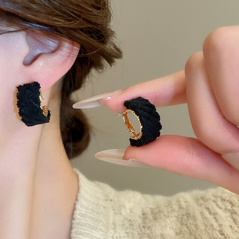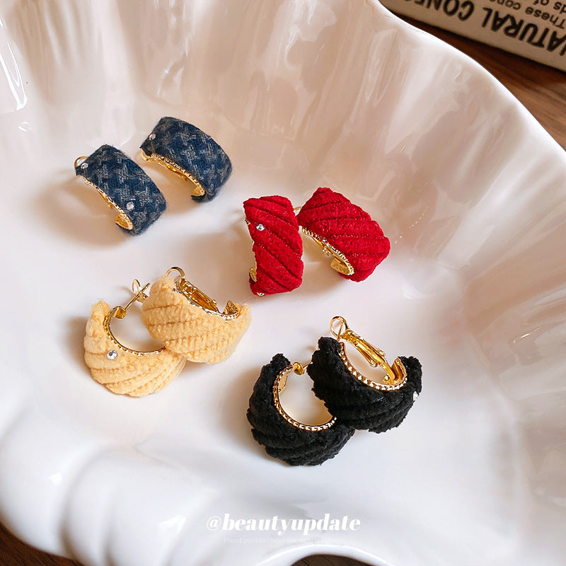 A廠【HE23431】925銀針鑲鑽布藝C型耳環女簡約百搭耳環時尚氣質耳飾輕奢高級感秋冬 24.11-2
