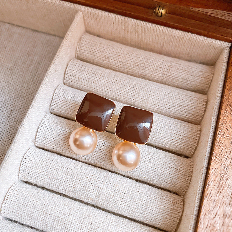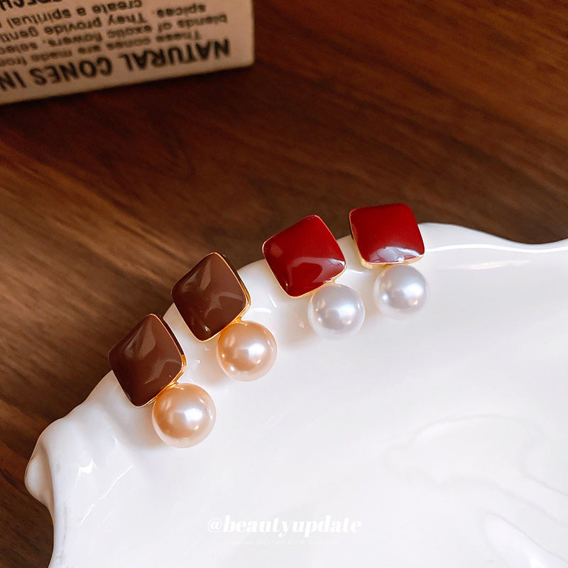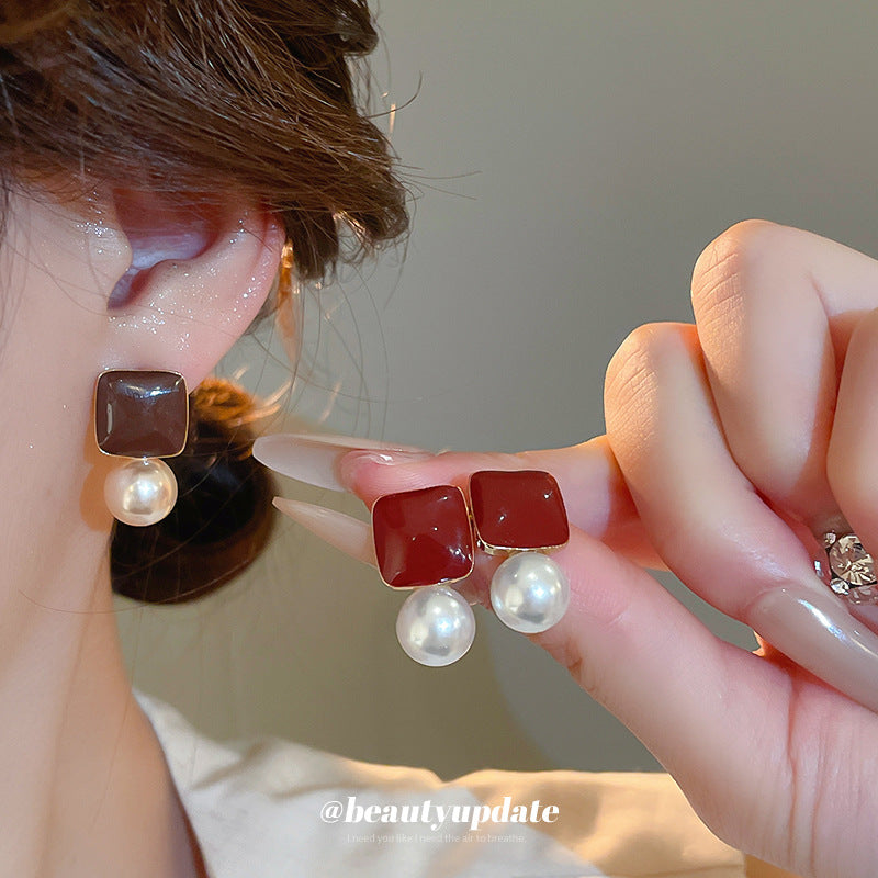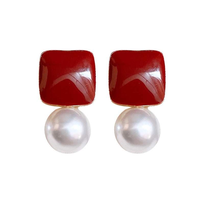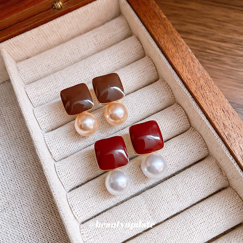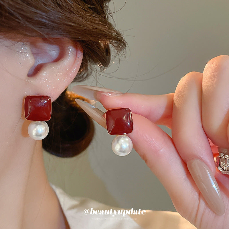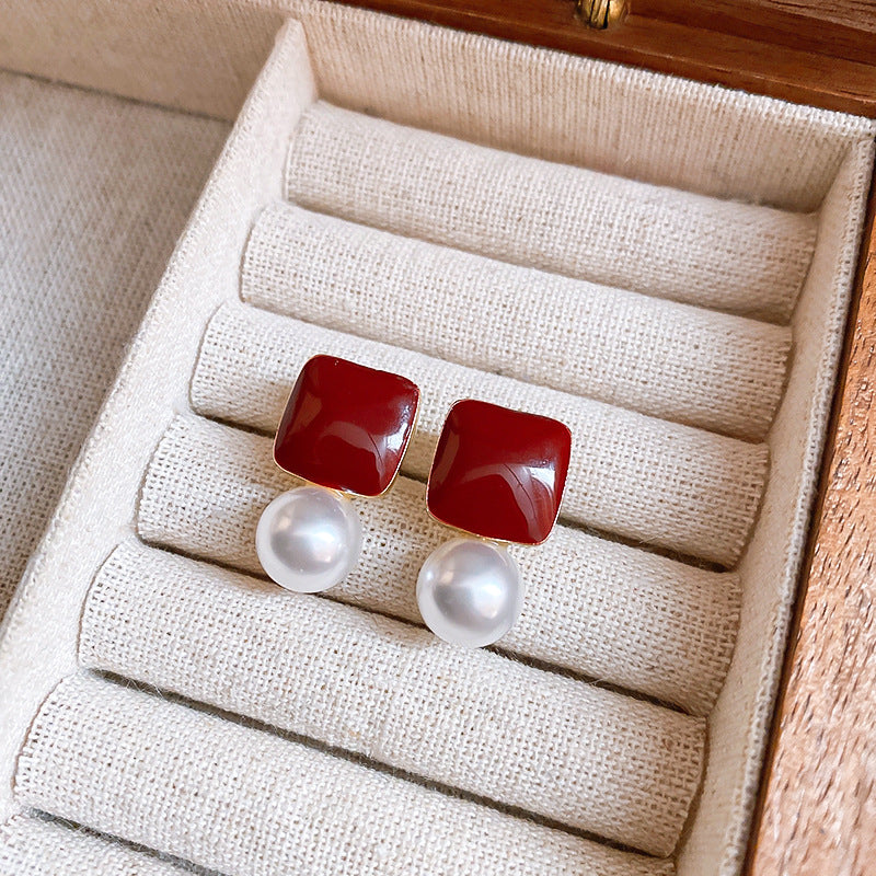 A廠【HE23441】925銀針安可拉紅色珍珠耳環法式輕奢耳環時尚氣質耳飾秋冬高級感 24.11-2
