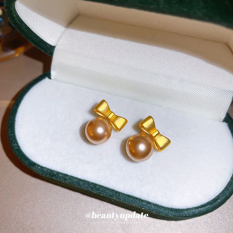 A廠【HE23450】925銀針蝴蝶結人造珍珠耳環女百搭輕奢風耳環時尚氣質耳環小眾高級感 24.11-3