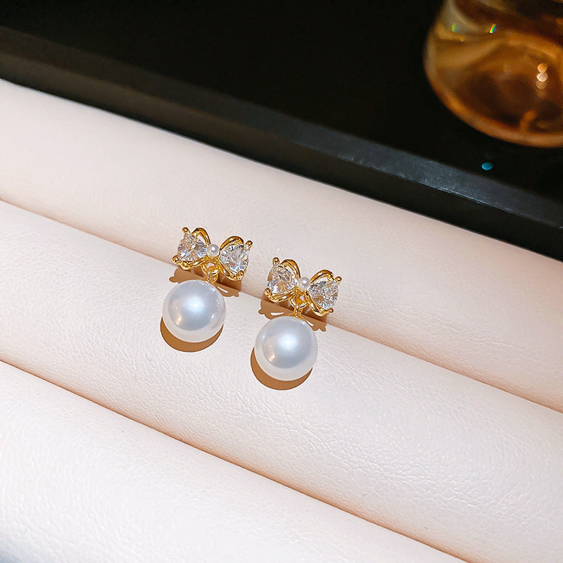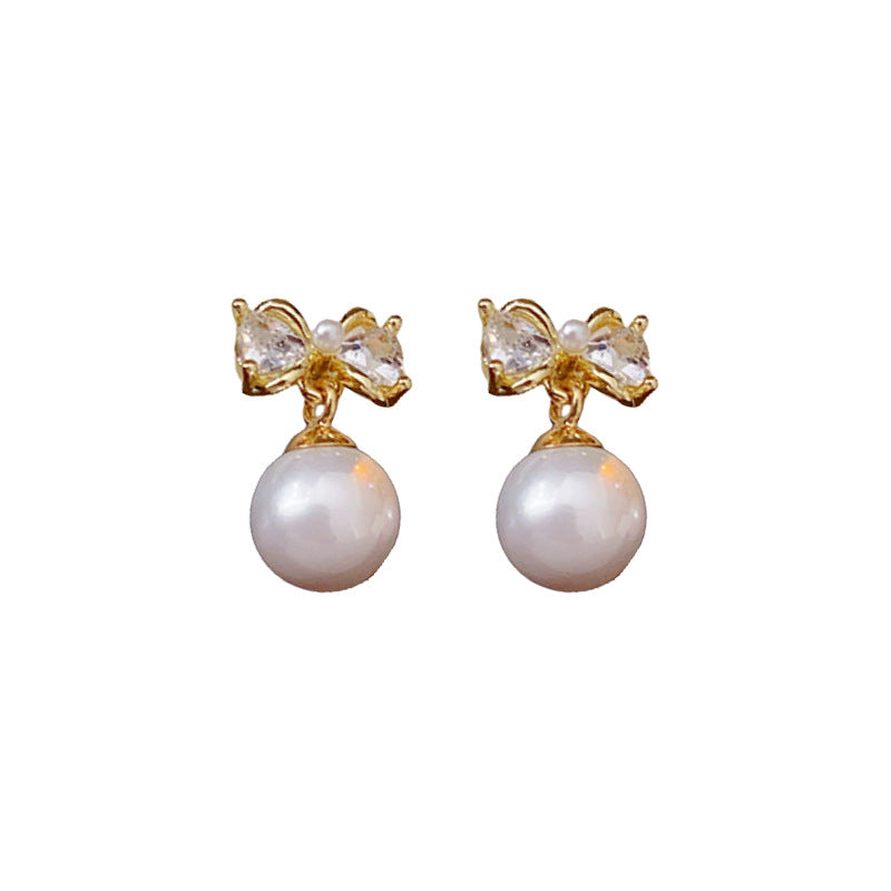 A廠【HE23475】真金電鍍925銀針鋯石蝴蝶結珍珠耳環高級感百搭耳環時尚氣質耳飾配件 24.11-2