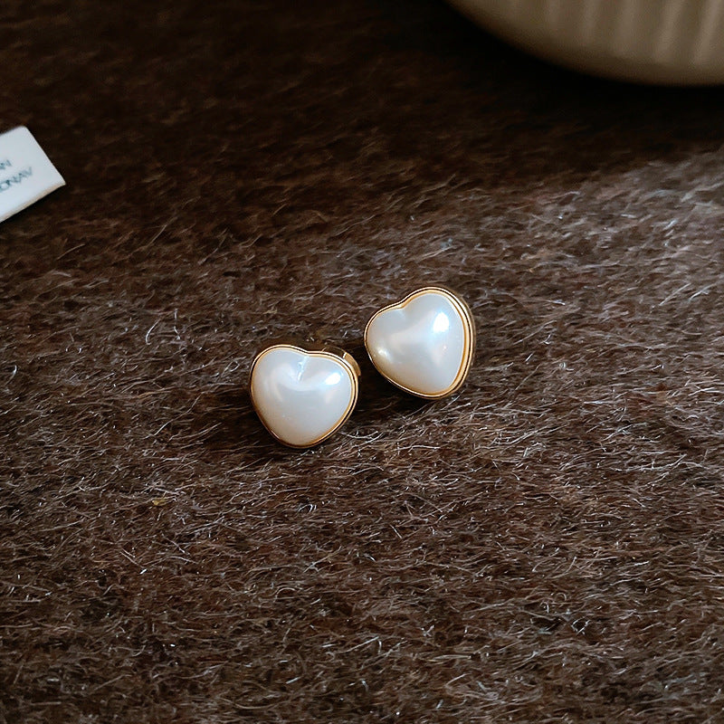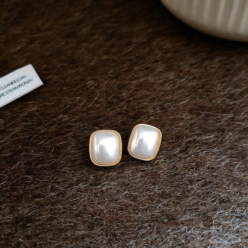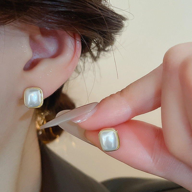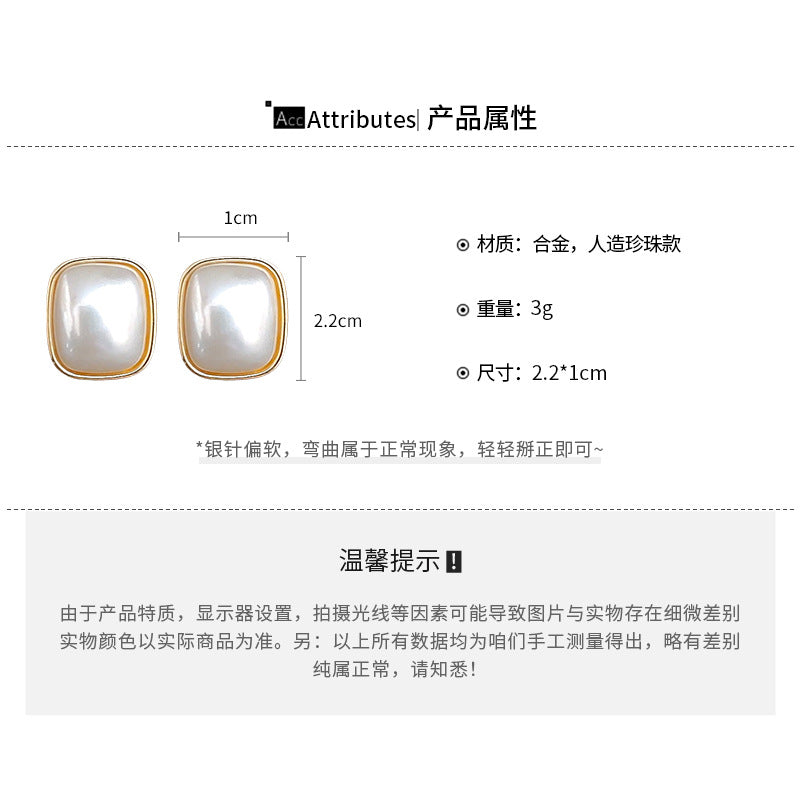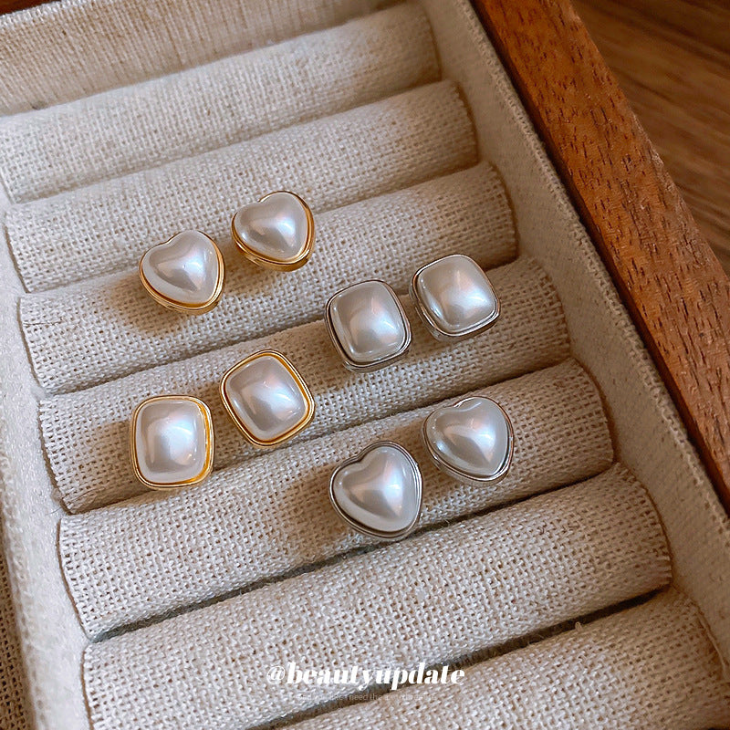 A廠【HE23496】925銀針方形愛心珍珠耳環女法式簡約百搭耳環時尚氣質耳環秋冬高級感 24.11-2