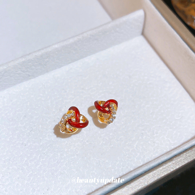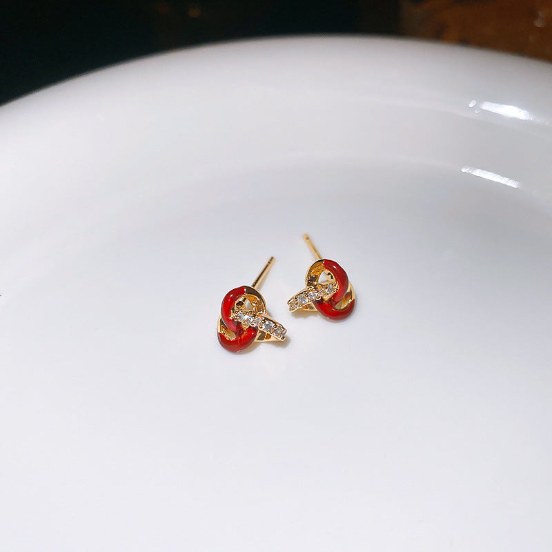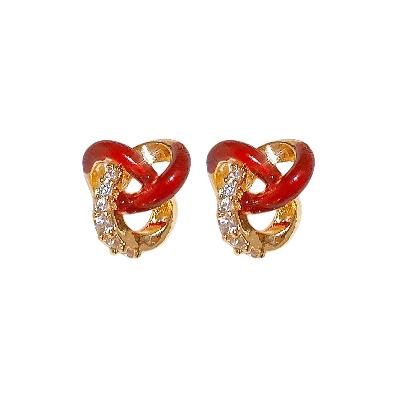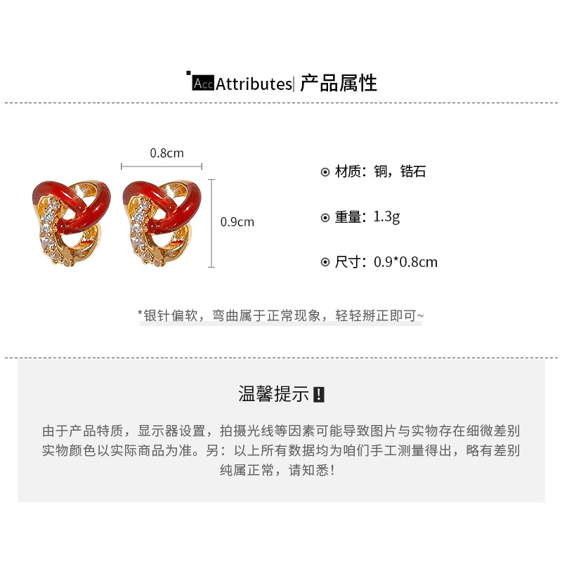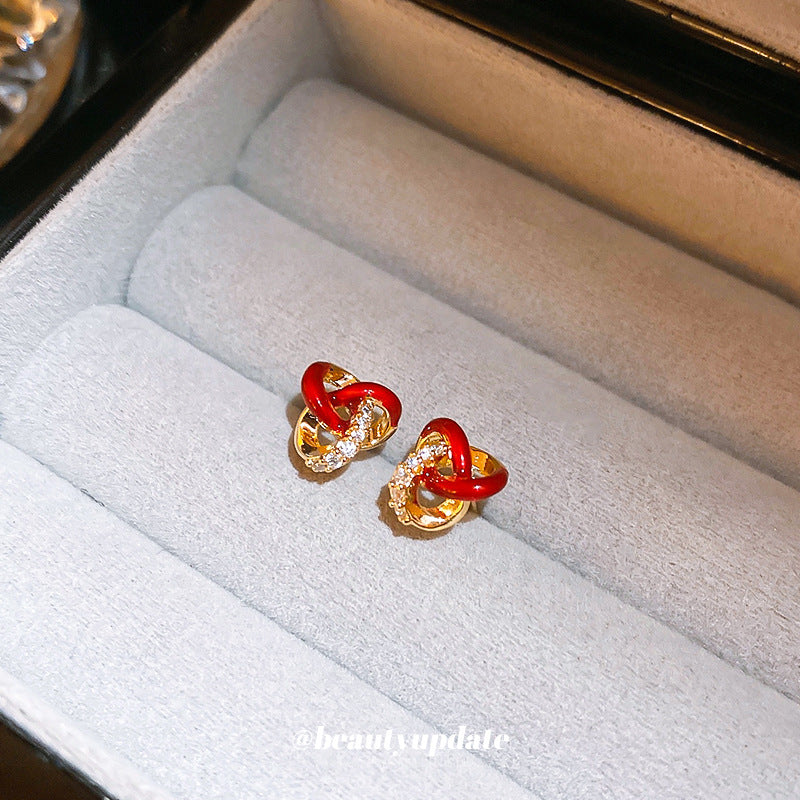 A廠【HE23646】真金電鍍925銀針鋯石滴油交叉耳環簡約紅色氣質耳環輕奢高級感耳飾女 24.11-3