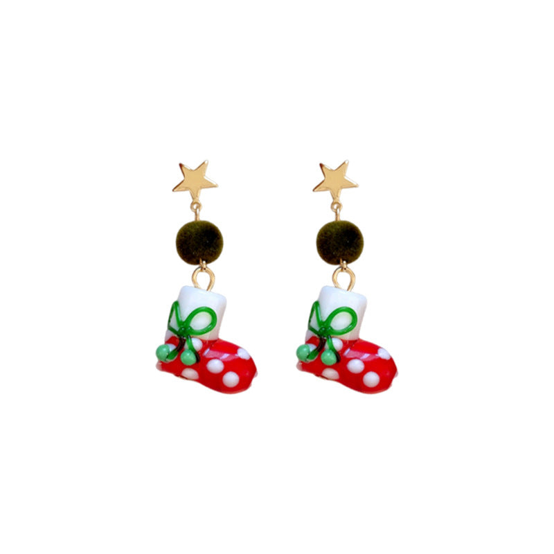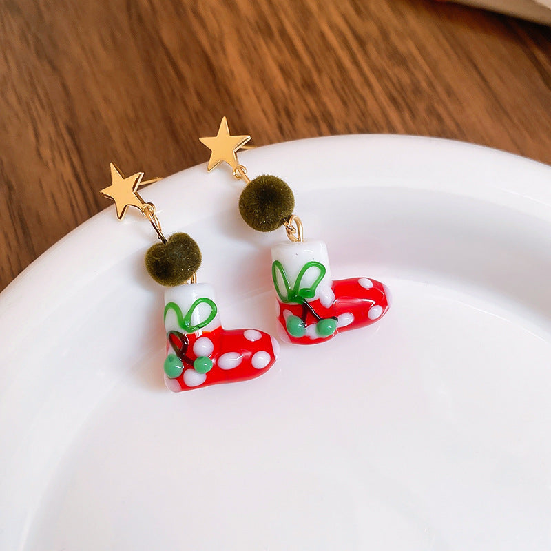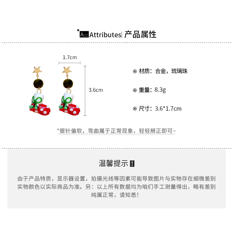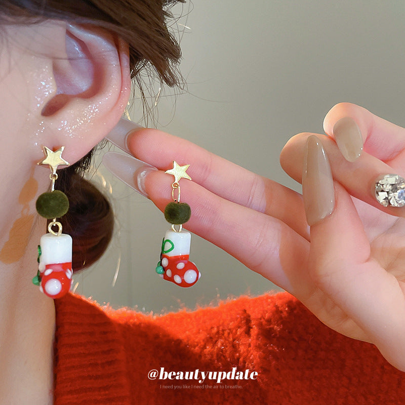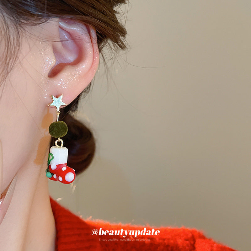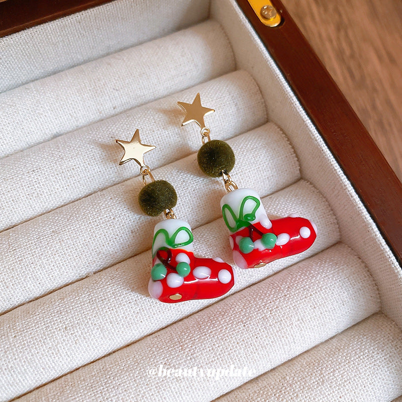 A廠【HE23649】925銀針滴油星星聖誕襪耳環女小眾聖誕節創意耳環輕奢高級感耳飾秋冬 24.11-3