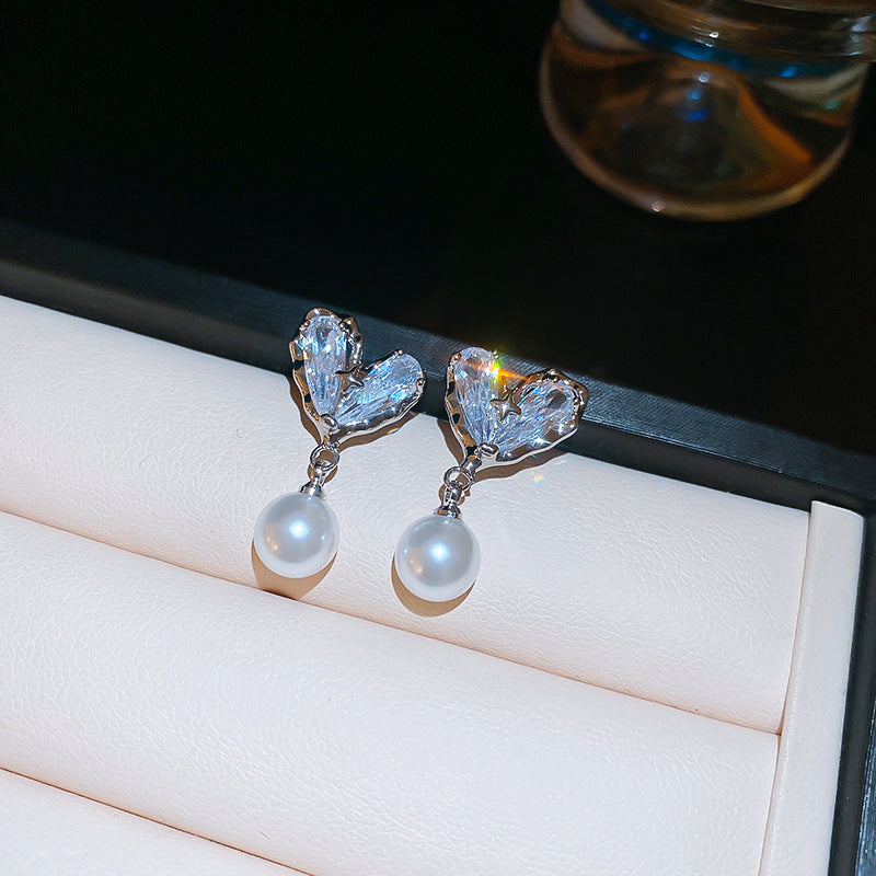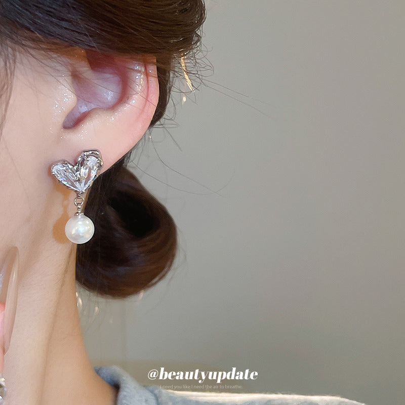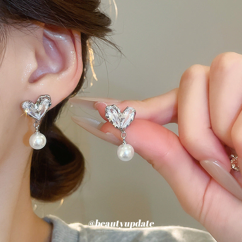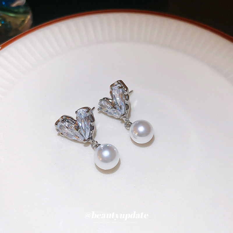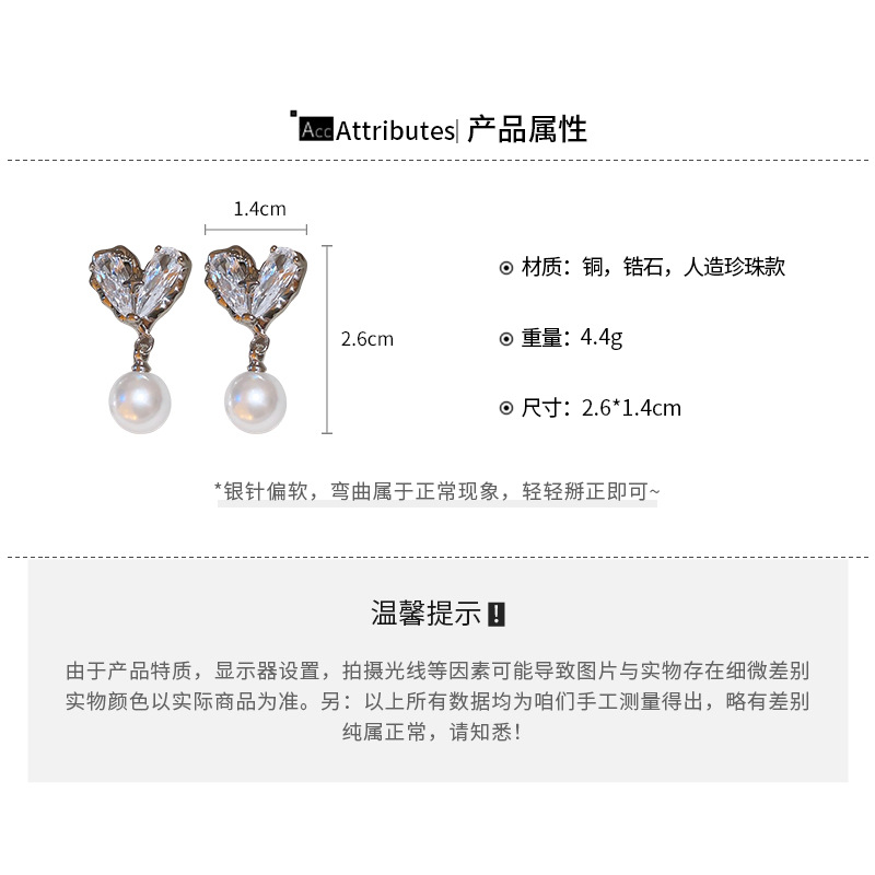 A廠【HE23670】925銀針鋯石愛心人造珍珠耳環女簡約百搭耳環時尚氣質耳飾輕奢高級感 24.11-4
