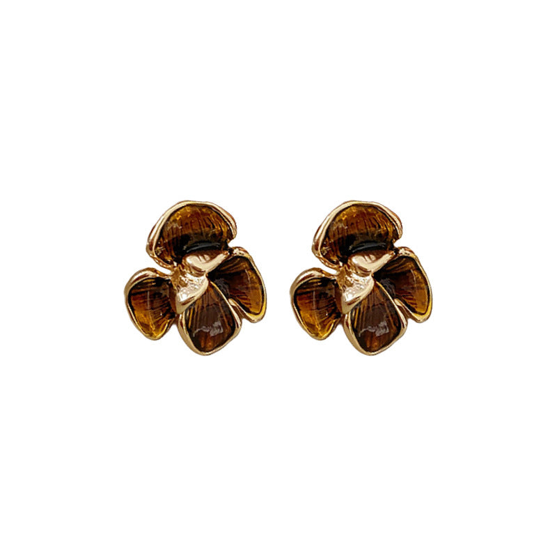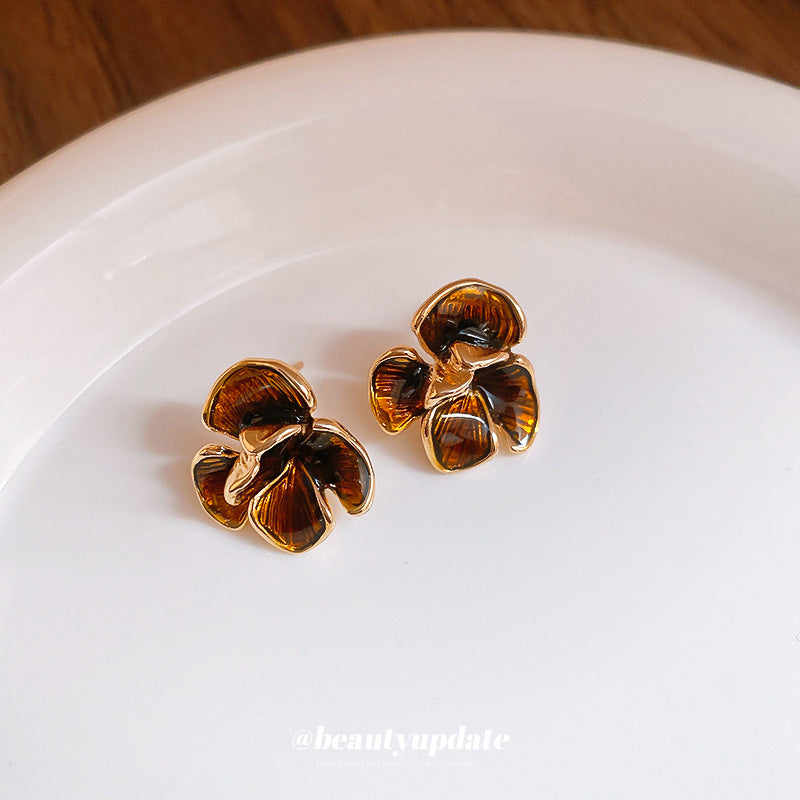 A廠【HE23671】925銀針美拉德滴油花朵耳環復古小眾百搭設計耳環輕奢高級感時尚耳環 24.11-4