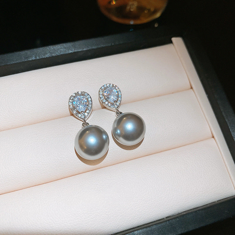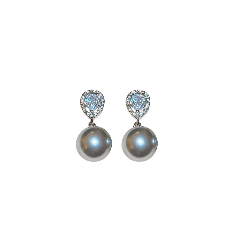 A廠【HE23688】925銀針鋯石水滴珍珠耳環女法式時尚簡約百搭耳環輕奢高級感氣質耳環 24.11-4