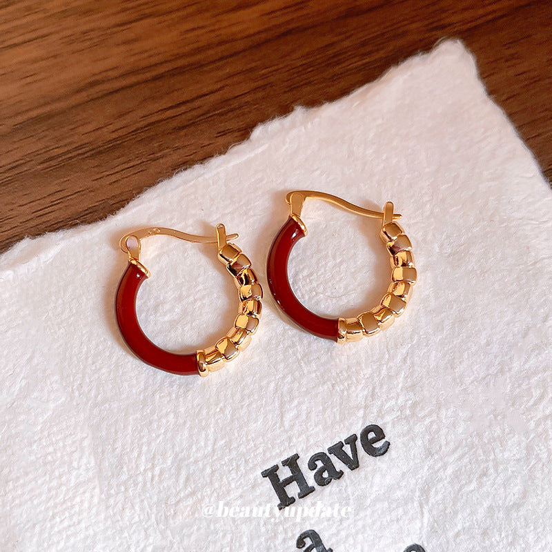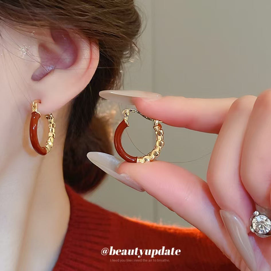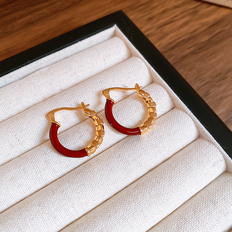 A廠【HE23708】真金電鍍滴安可拉紅色耳環復古小眾百搭耳環輕奢高級感時尚耳環女 24.11-4