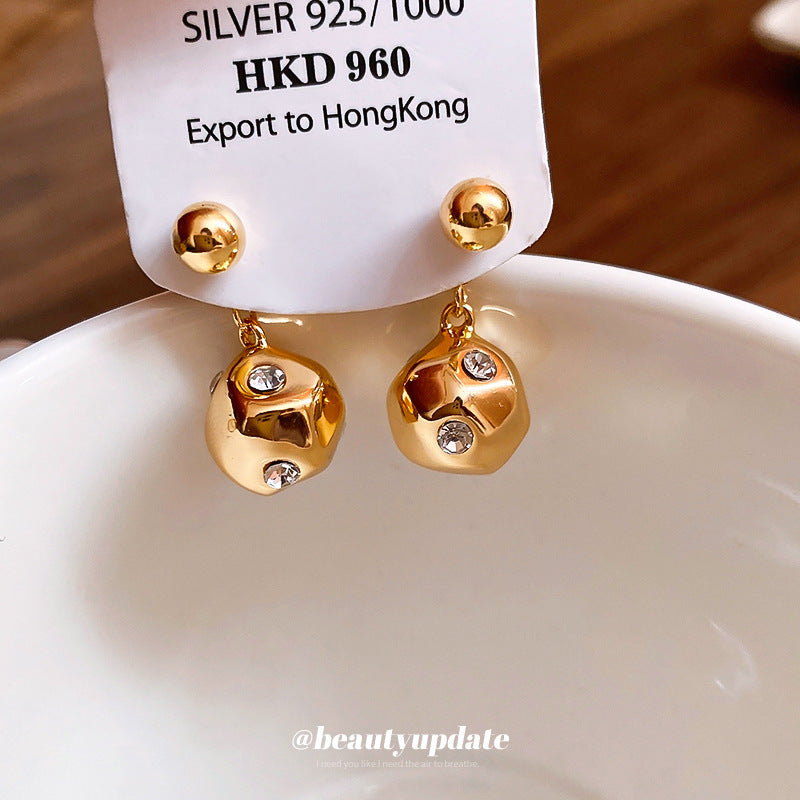 A廠【HE23739】真金電鍍925銀針鑲鑽豆豆耳環女款兩戴時尚耳環輕奢高級感耳飾 24.11-4