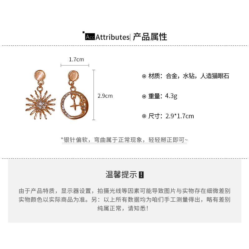 A廠【HE23801】925銀針鑲鑽太陽花星星貓眼石款耳環輕奢高級感耳環女不對稱耳飾小眾 24.11-5