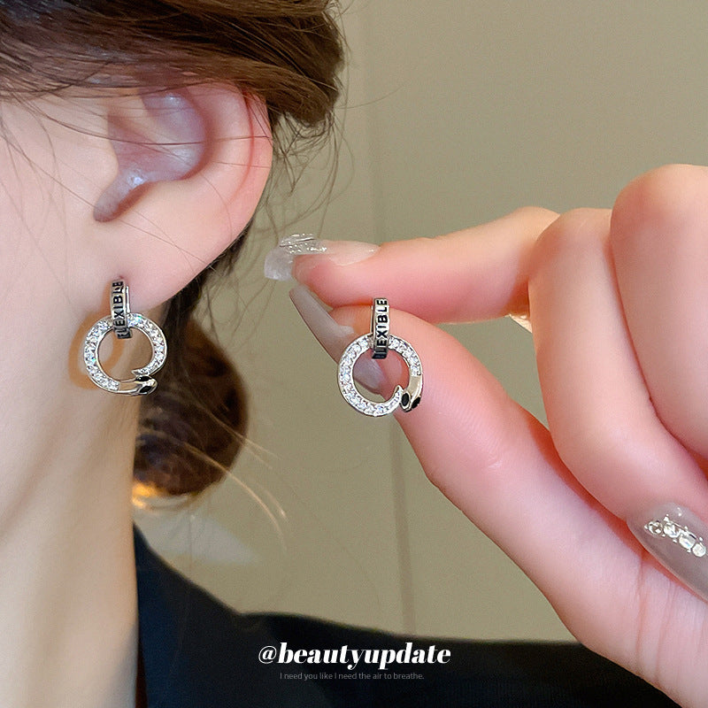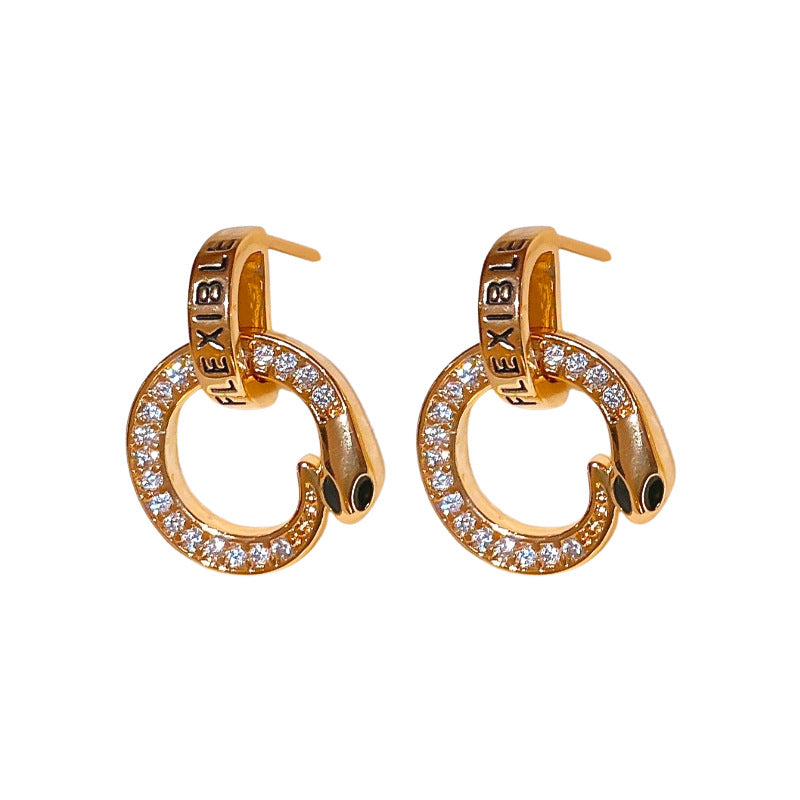 A廠【HE23807】真金電鍍925銀針滴油鋯石蛇形字母耳環女小眾復古耳環輕奢高級感耳飾 24.11-5