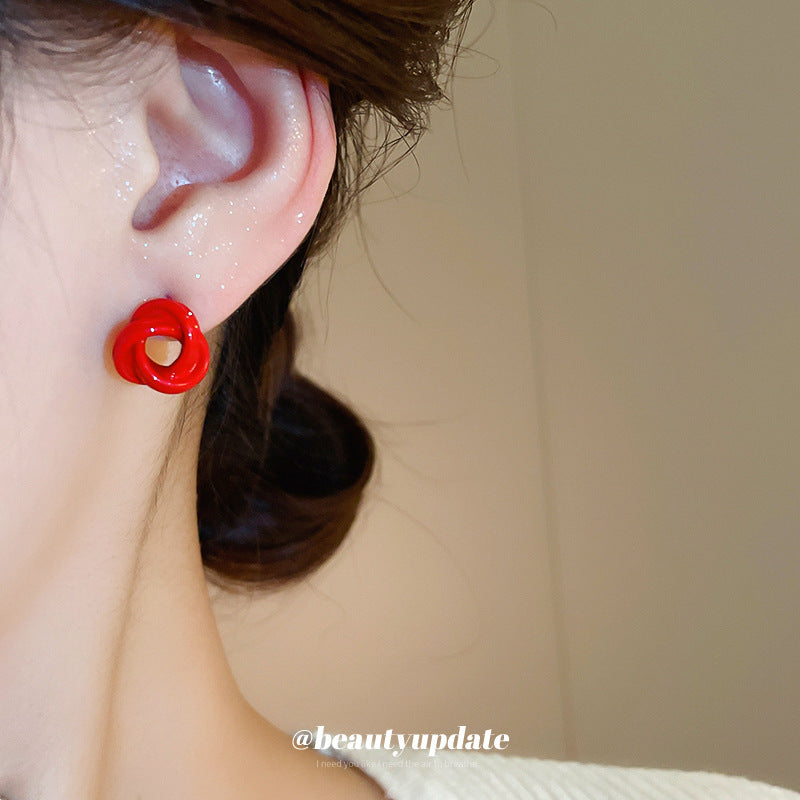 A廠【HE23828】925銀針安可拉紅花朵耳環女簡約小眾百搭耳環時尚氣質耳環輕奢高級感 24.11-5