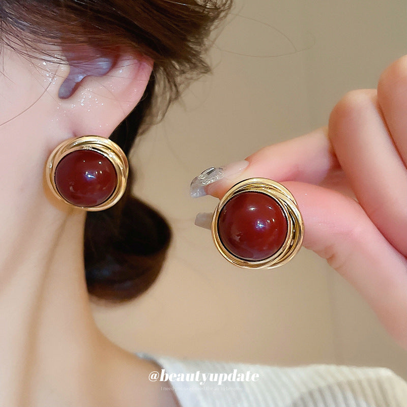 A廠【HE23830】跨境圓形人造珍珠耳環女復古小眾百搭耳環時尚氣質耳環輕奢高級感 24.11-5