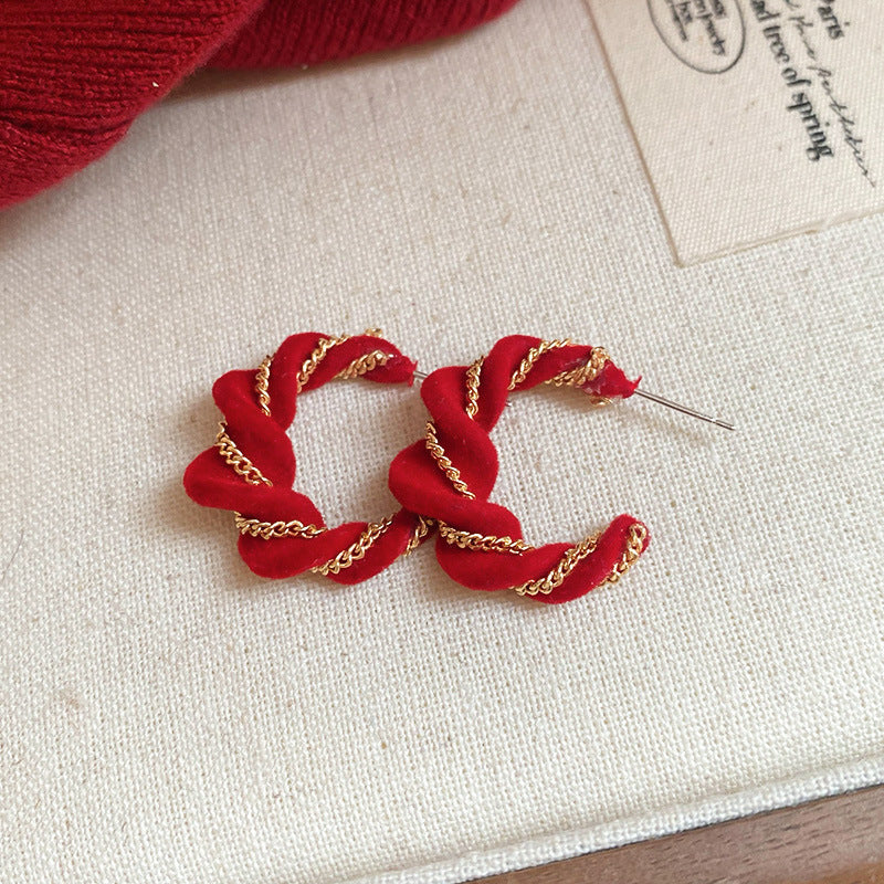 A廠【HE23890】925銀針植絨螺旋C型耳環女復古時尚百搭耳環時尚氣質耳環秋冬高級感 24.11-5