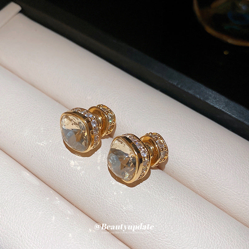 A廠【HE23892】真金電鍍925銀針鑲鑽鋯石方形耳環女時尚簡約小眾耳環輕奢高級感耳飾 24.12-1