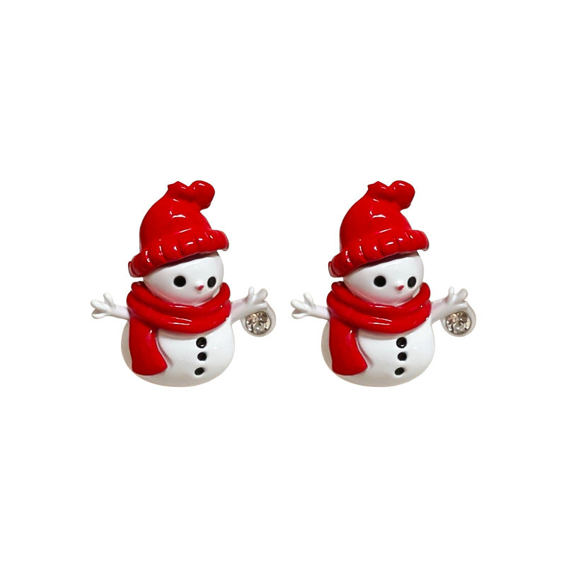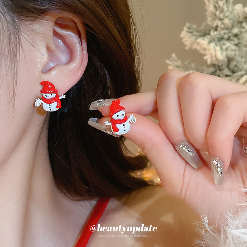 A廠【HE23935】925銀針鑲鑽聖誕節雪人耳環女百搭設計感耳環時尚氣質耳環小眾高級感 24.12-1