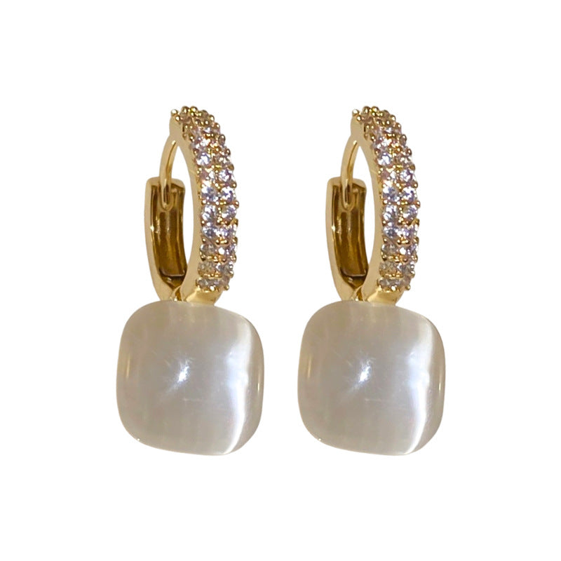 A廠【HE23936】真金電鍍鑲鑽方形貓眼石款耳環法式小眾氣質耳環輕奢高級感耳飾女 24.12-1