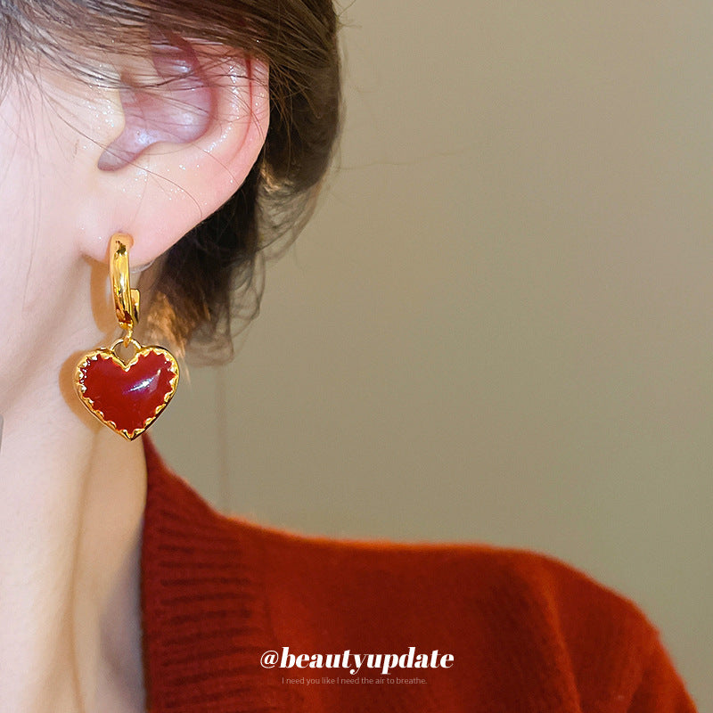 A廠【HE23959】925銀針滴油愛心C型耳環女復古小眾百搭耳環時尚氣質耳環輕奢高級感 24.12-1