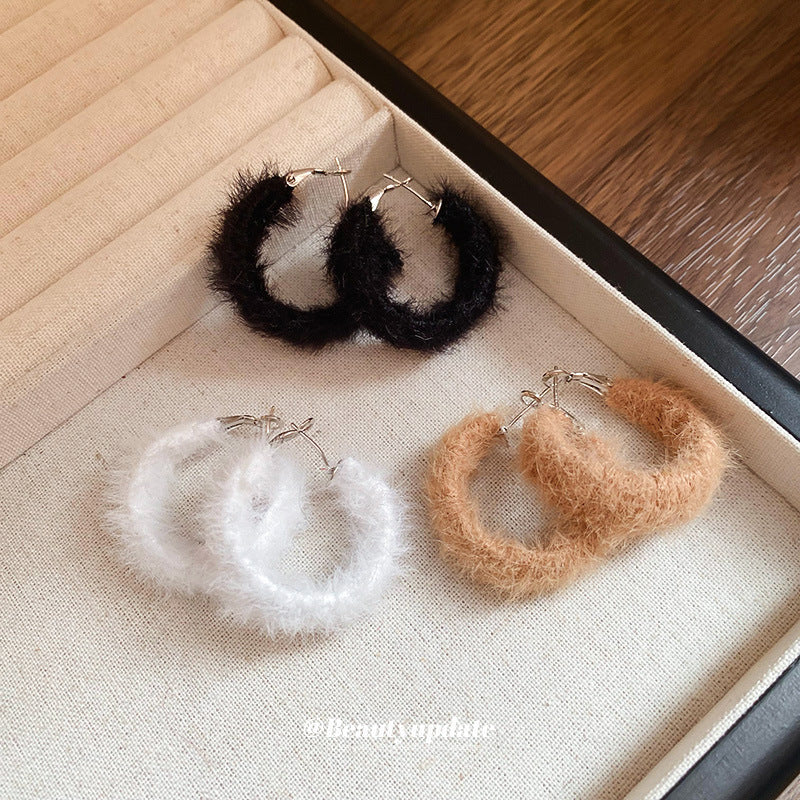 A廠【HE24011】925銀針復古毛絨耳圈耳環女小眾百搭設計耳環時尚氣質耳環高級感秋冬 24.12-1
