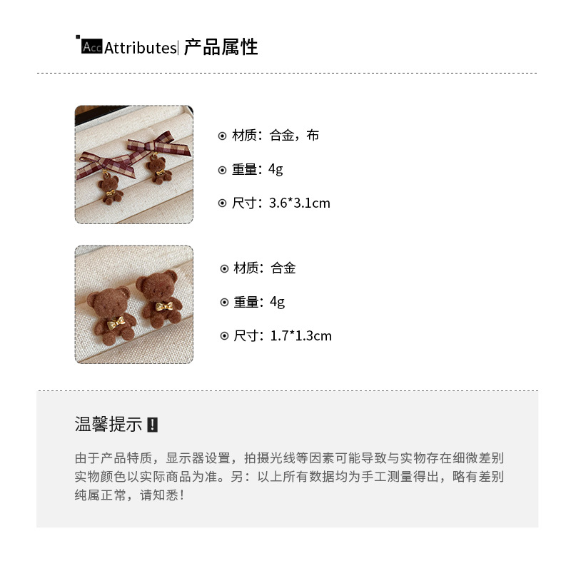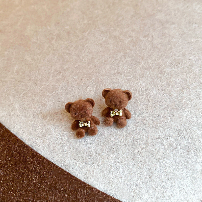 A廠【HE24052】925銀針韓系蝴蝶結小熊植絨耳環女甜美少女心耳環輕奢高級感耳飾秋冬 24.12-1