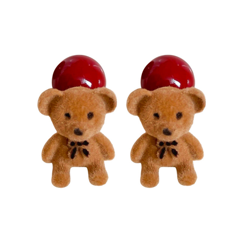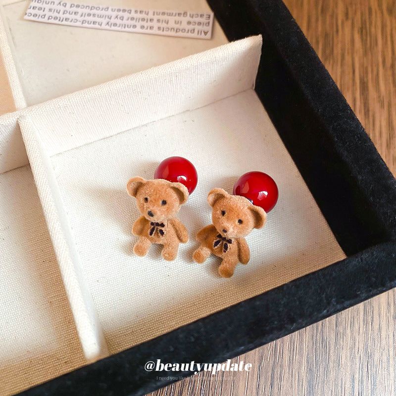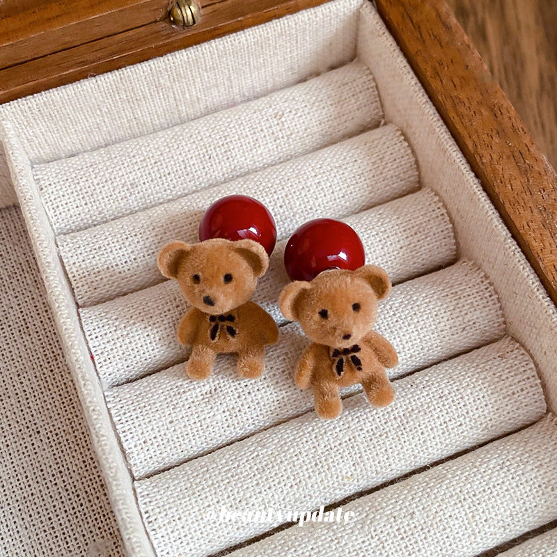 A廠【HE24067】925銀針植絨蝴蝶結小熊耳環一款兩戴小眾百搭耳環輕奢高級感耳飾秋冬 24.12-1