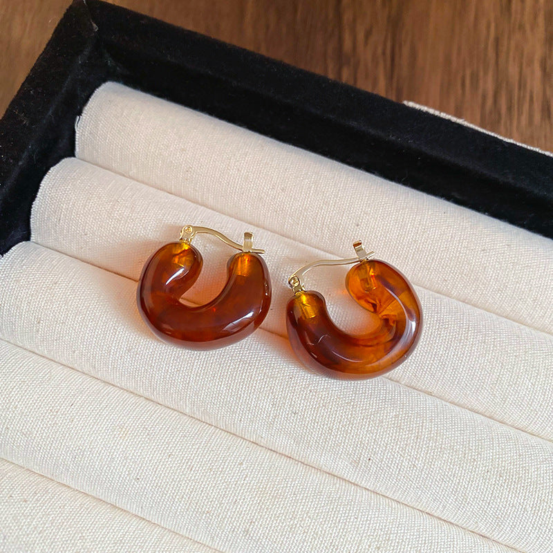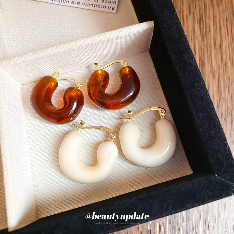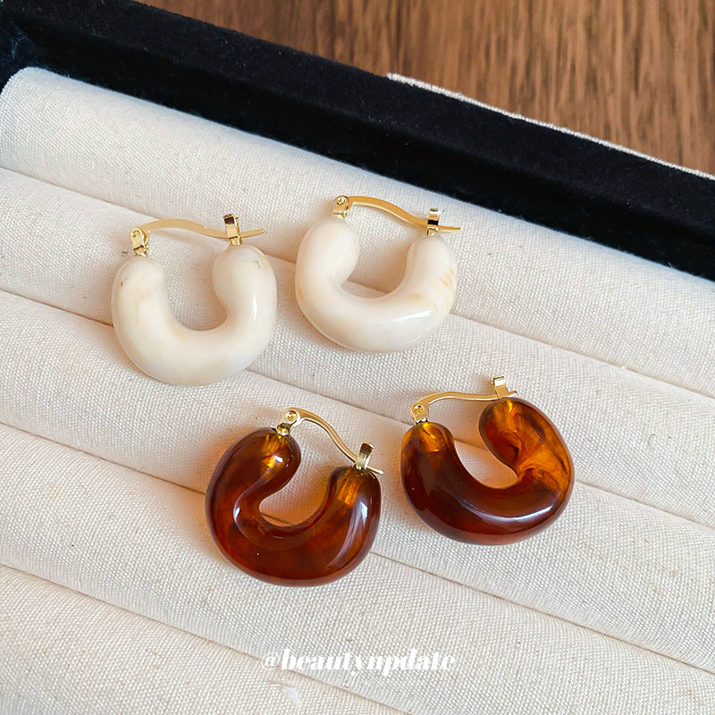 A廠【HE24072】美拉德樹脂暈染U型耳環復古小眾百搭耳環時尚氣質耳飾輕奢高級感 24.12-1