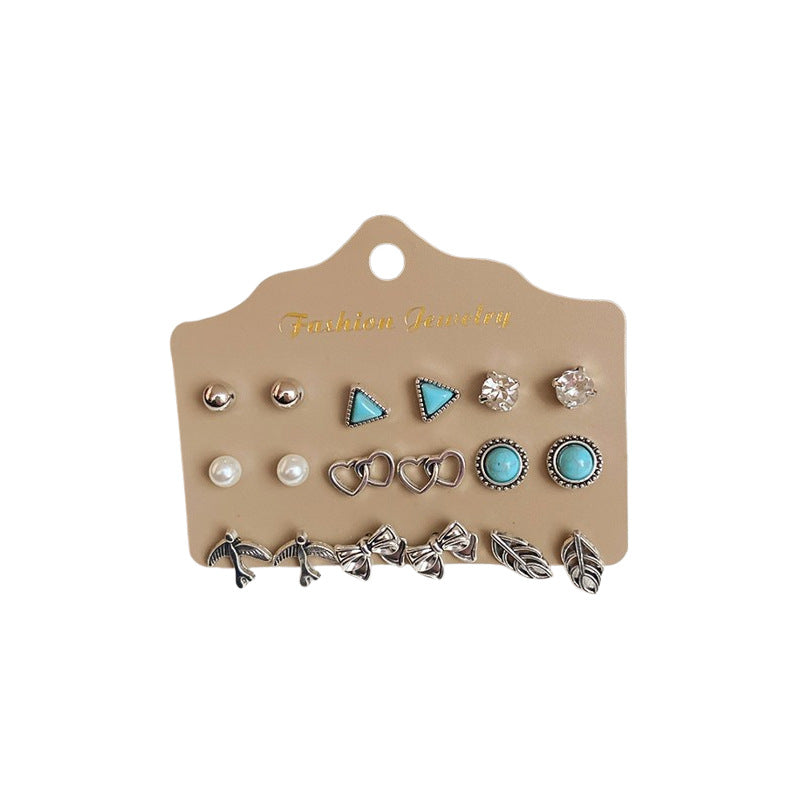 A廠【HE24135】925銀針鑲鑽幾何珍珠耳環套裝女復古小眾耳環時尚氣質耳環輕奢高級感 24.12-2