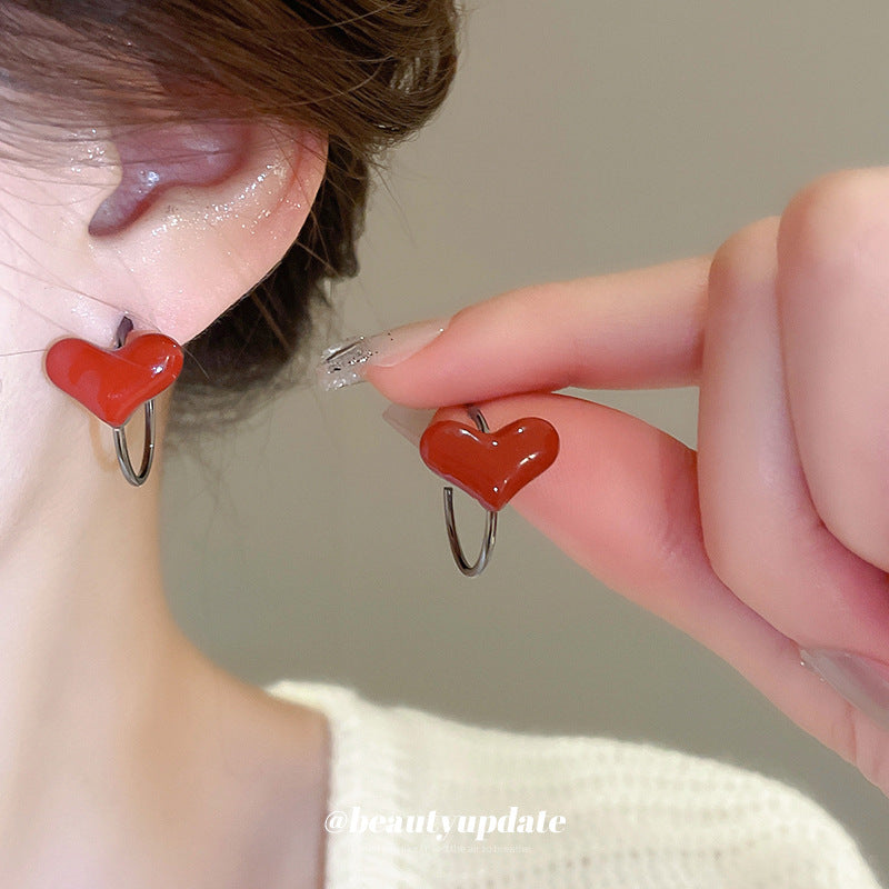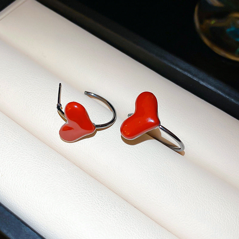 A廠【HE24144】925銀針安可拉紅色滴油愛心C型耳環小眾百搭氣質耳環輕奢高級感耳飾 24.12-2