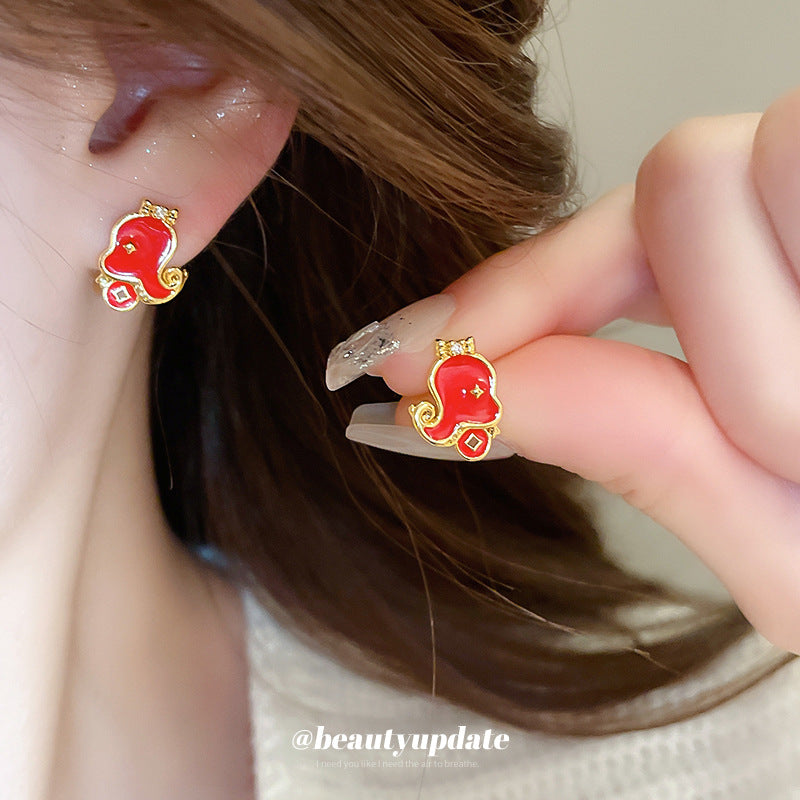 A廠【HE24146】真金電鍍925銀針本命年滴油小蛇耳環女時尚設計感耳環輕奢高級感耳飾 24.12-2