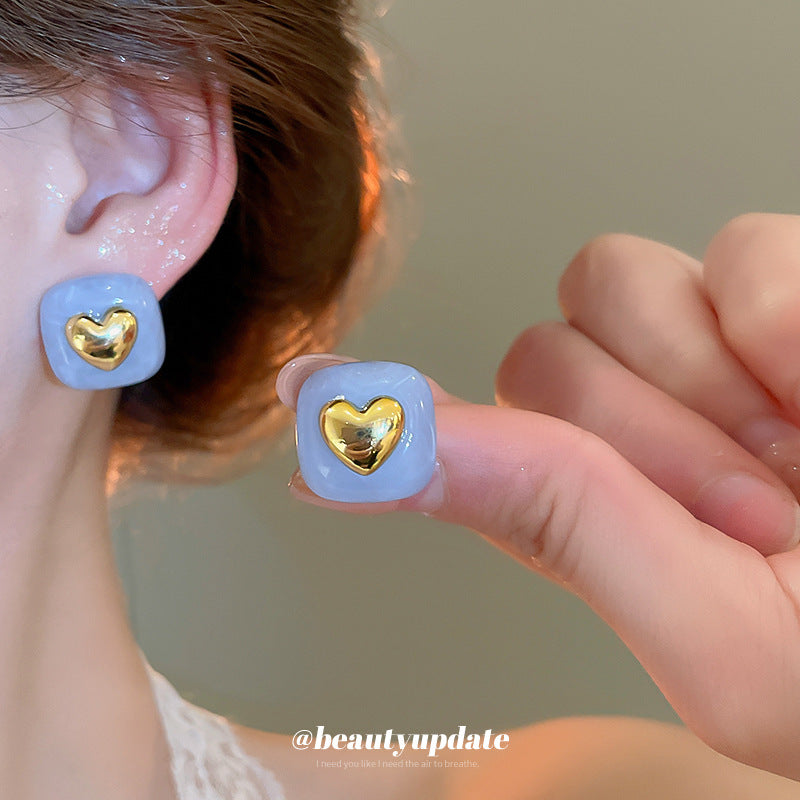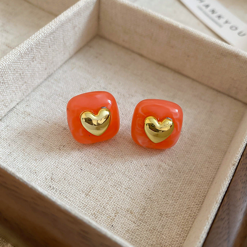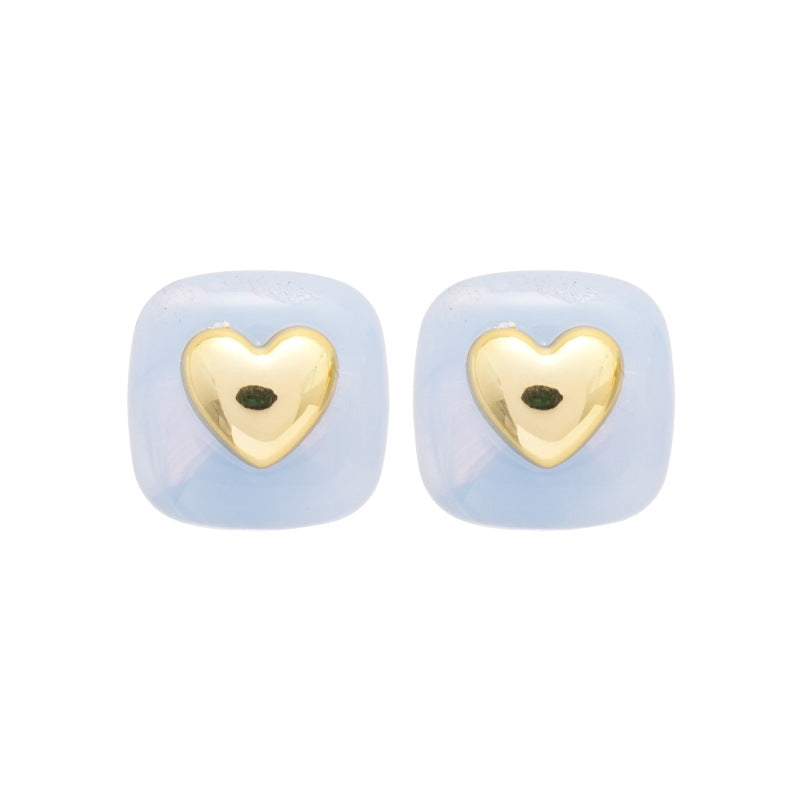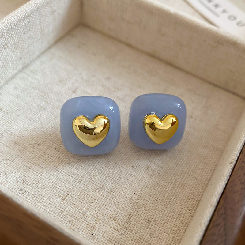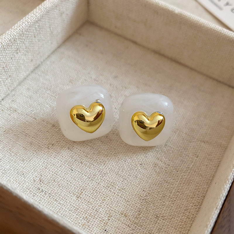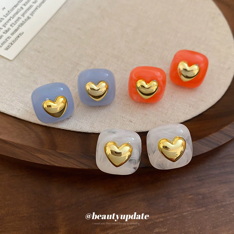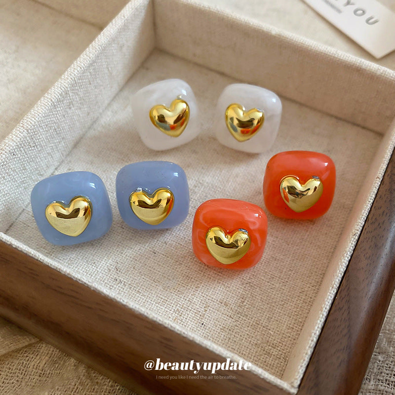 A廠【HE25109】925銀針方形愛心壓克力耳環女春季清新耳環女復古氣質耳環小眾高級感 25.03-1