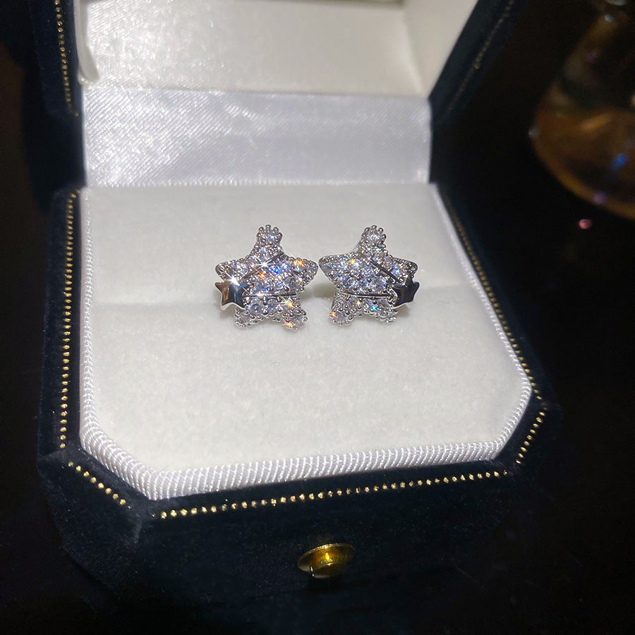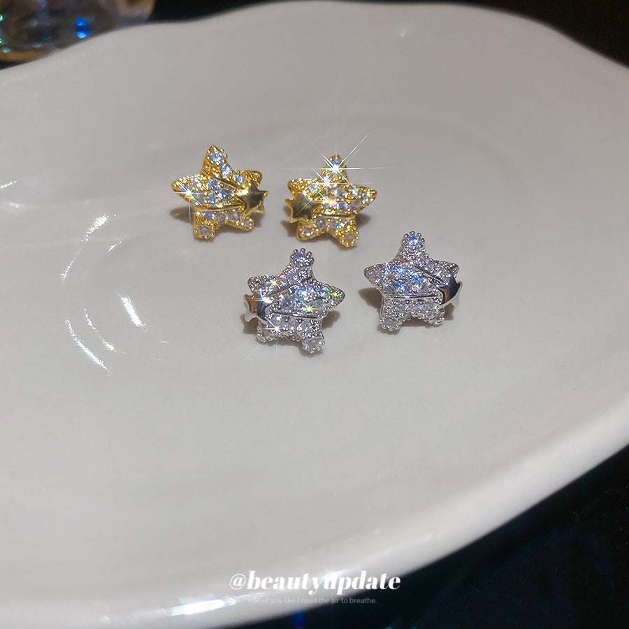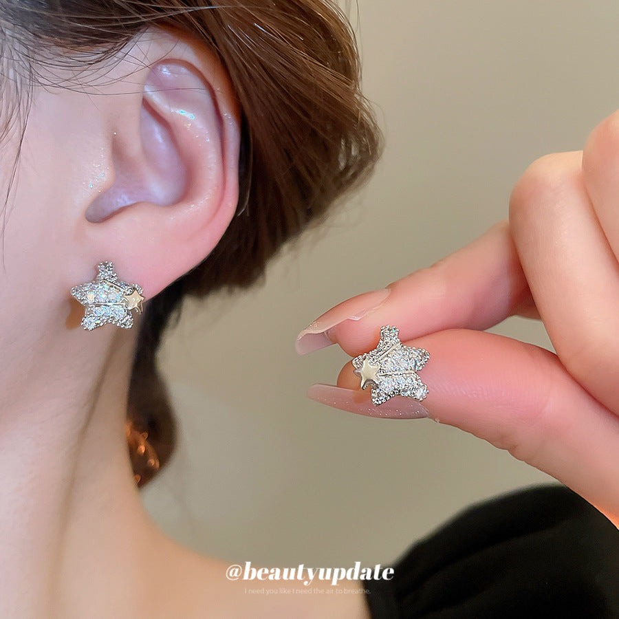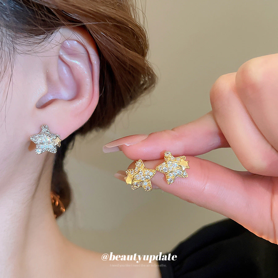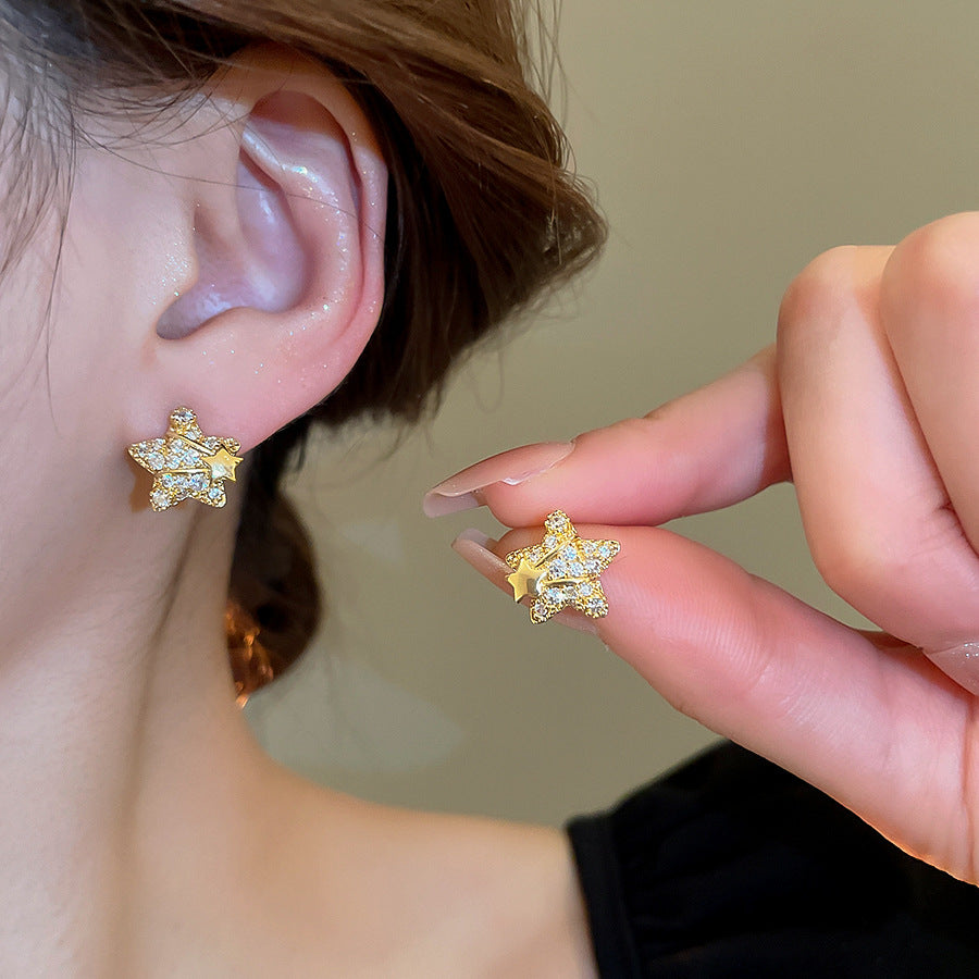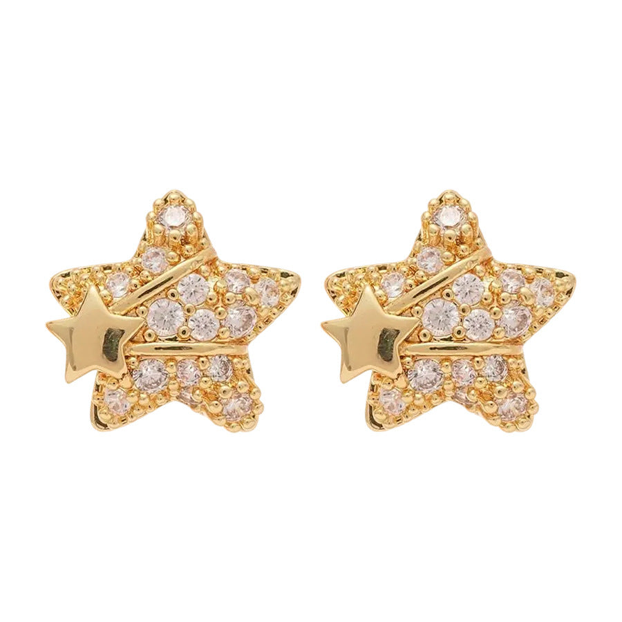 A廠【HE25570】18K真金電鍍925銀針鋯石星星耳環簡約優雅氣質耳環輕奢高級感耳飾女 25.03-4