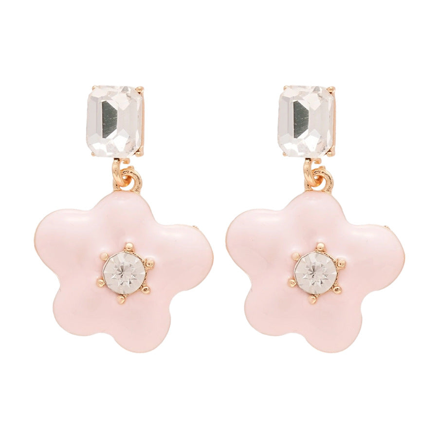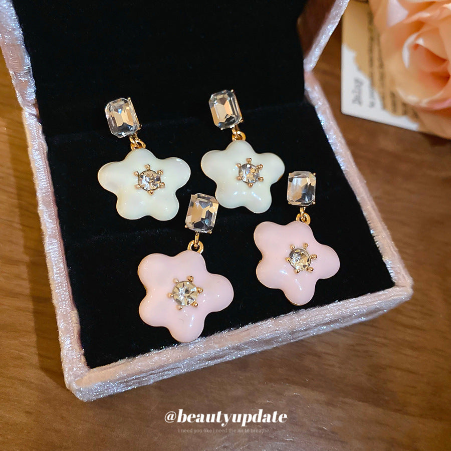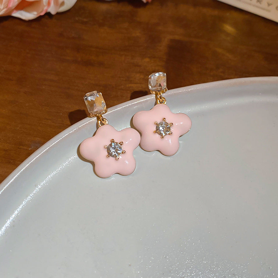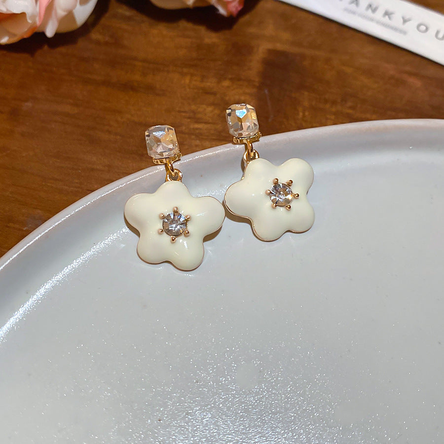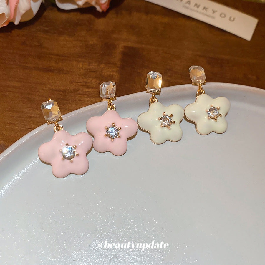 A廠【HE25606】925銀針鑲鑽滴油花朵耳環女簡約時尚耳環輕奢高級感通勤百搭耳環 25.04-3