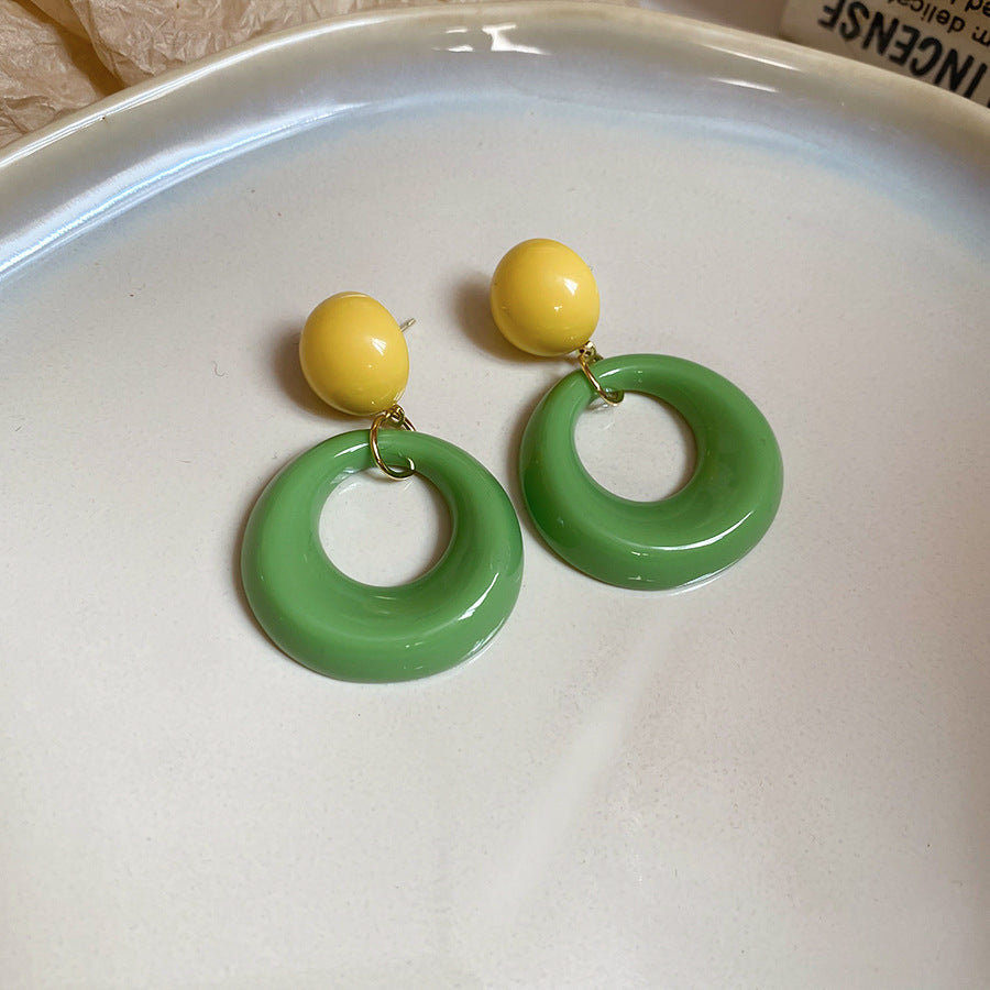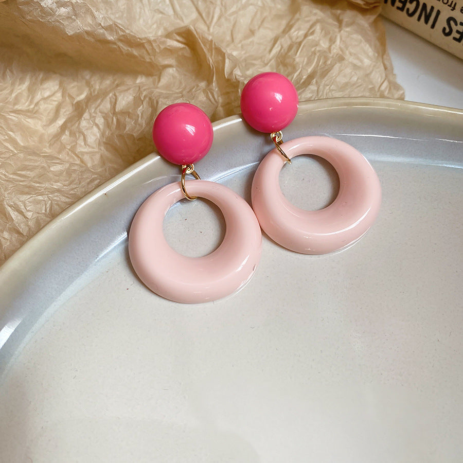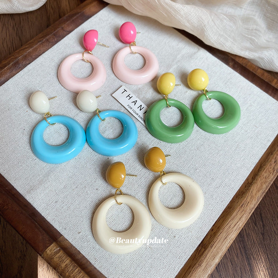 A廠【HE25633】925銀針壓克力圓形耳環春夏多巴胺百搭耳環女清新甜美耳飾小眾高級感 25.03-4