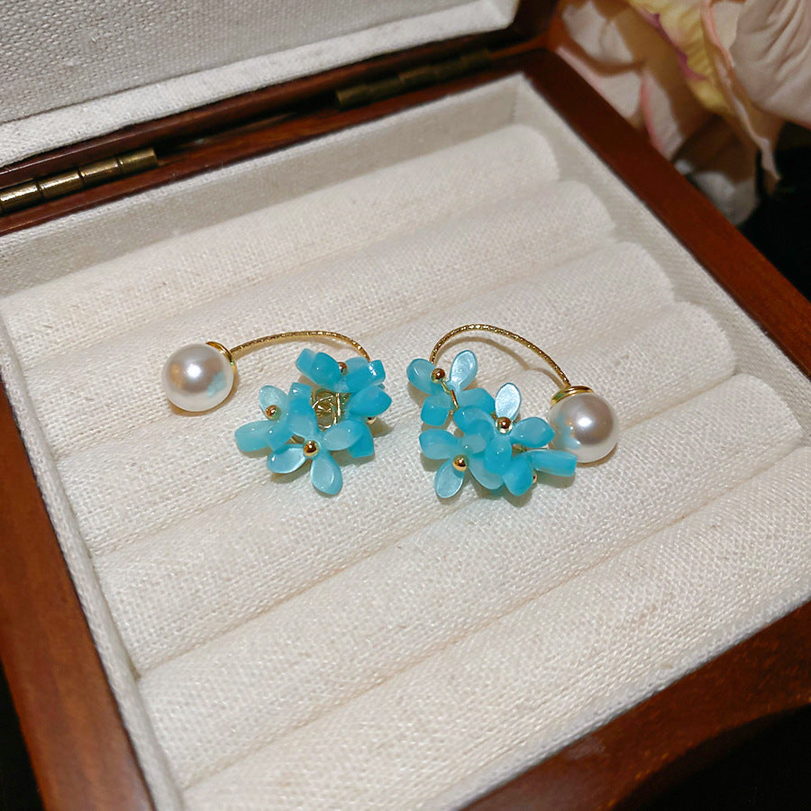 A廠【HE25824】18k真金電鍍珍珠樹脂花朵耳環清新甜美氣質耳環耳飾設計感小眾女 25.06-4