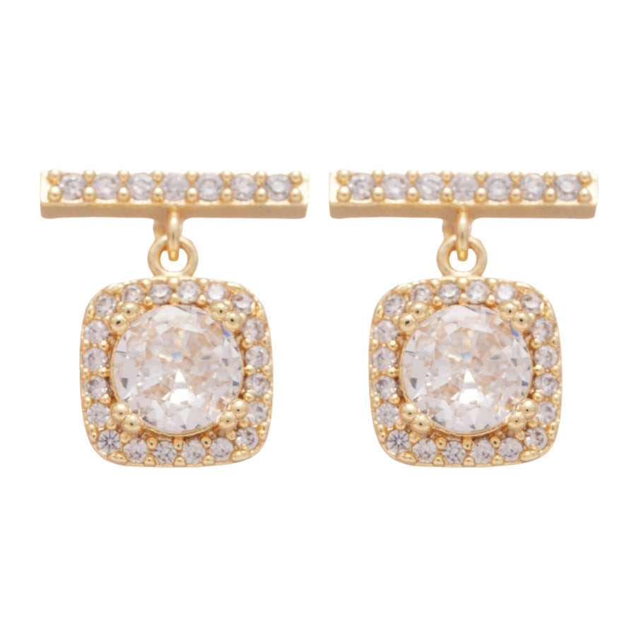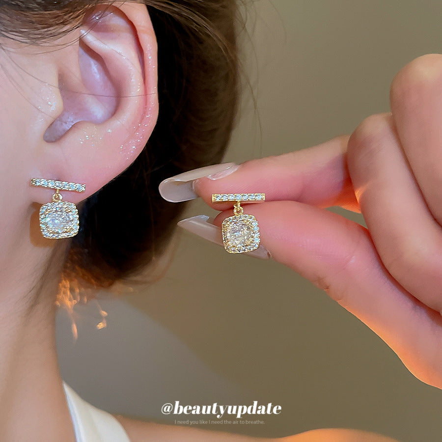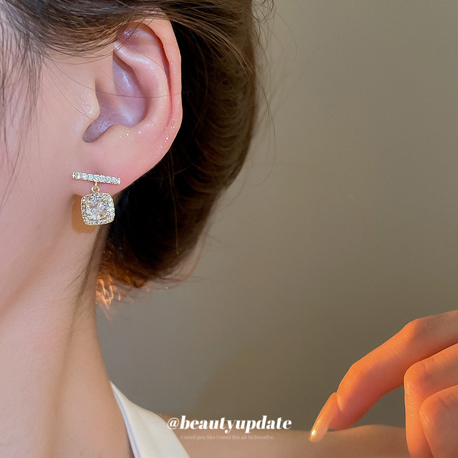 A廠【HE25825】18k真金電鍍925銀針鋯石方形耳環輕奢高級感耳環女精緻時尚百搭耳飾 25.04-3