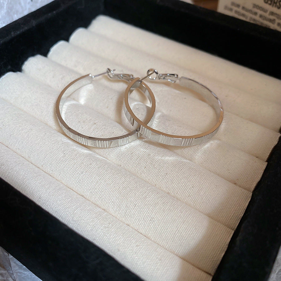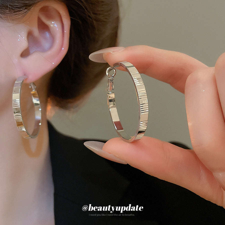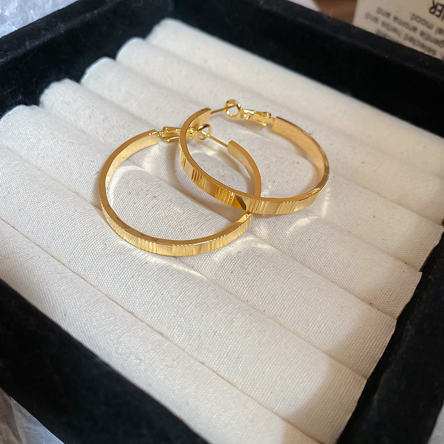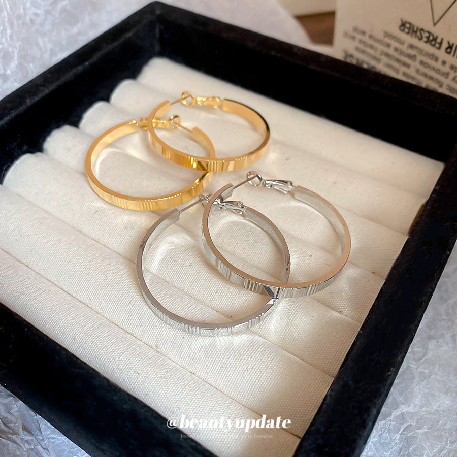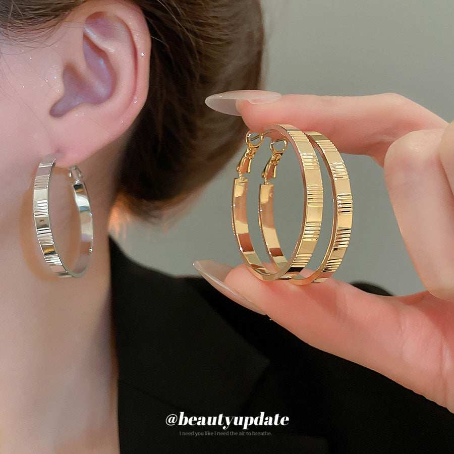 A廠【HE25900】18k真金電鍍925銀針條紋耳環女跨國簡約冷淡風素圈耳圈時尚氣質耳環 25.04-3