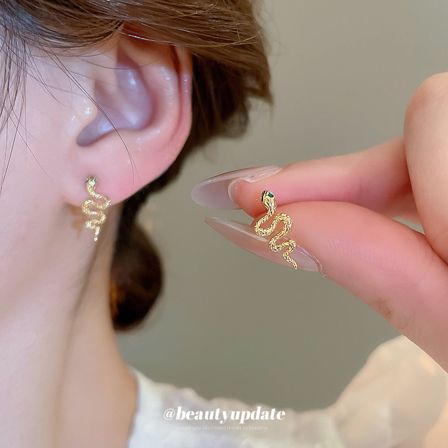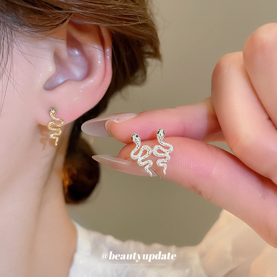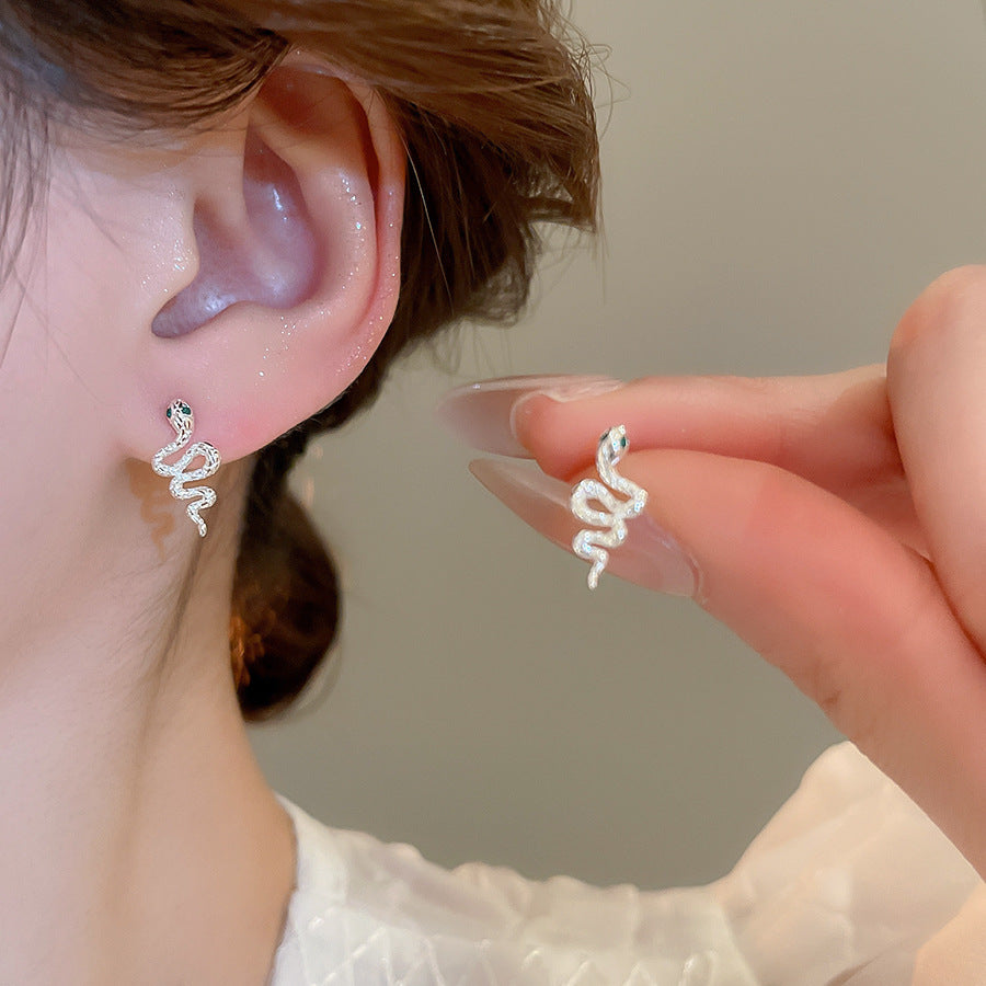 A廠【HE25916】925銀針鋯石蛇形耳環簡約可愛小巧耳環輕奢高級感時尚通勤百搭耳環女 25.04-3