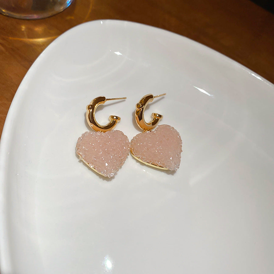 A廠【HE25933】18k真金電鍍925銀針C形樹脂愛心耳環時尚甜美耳環高級感氣質百搭耳飾 25.04-3