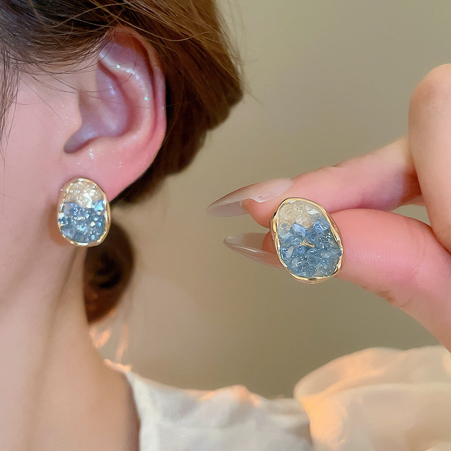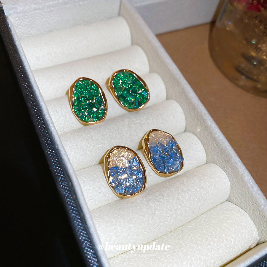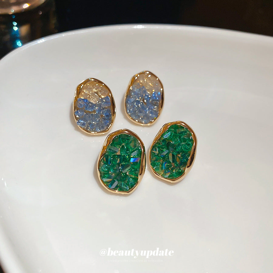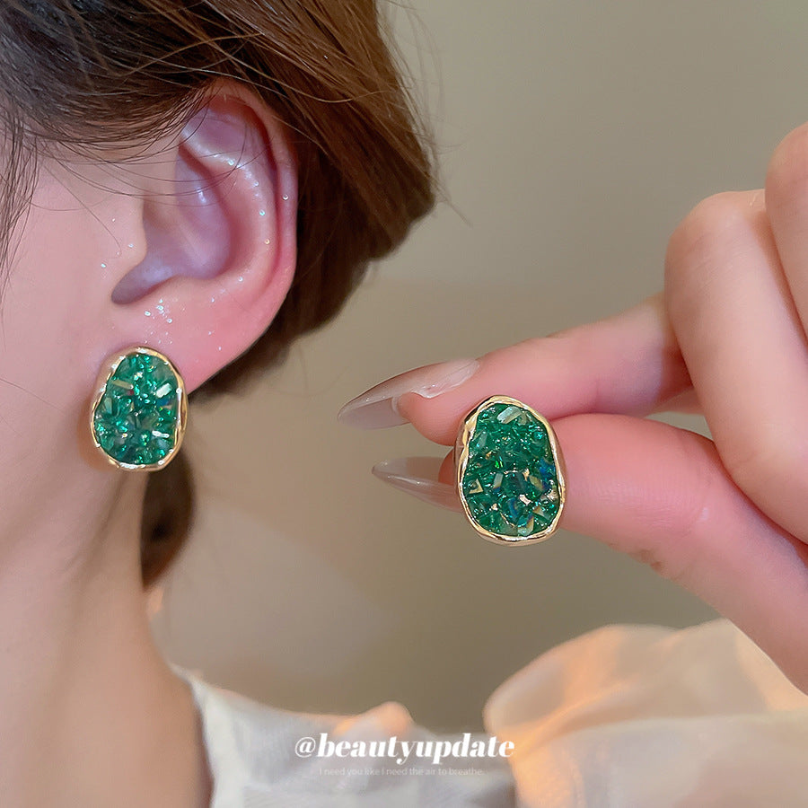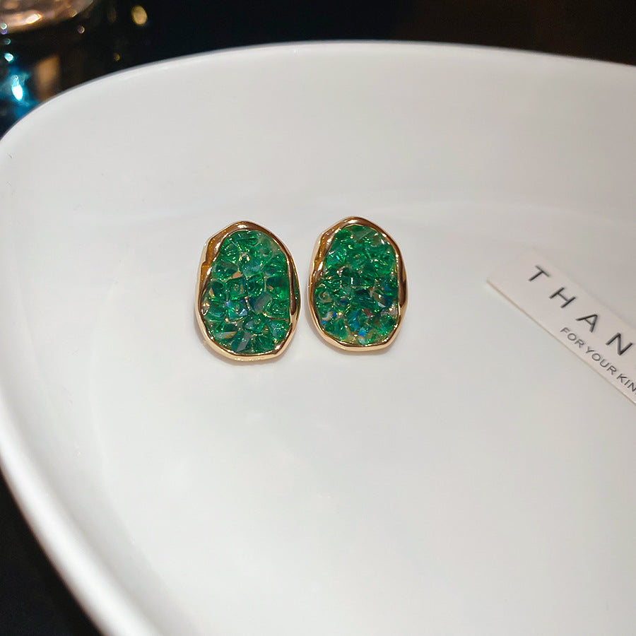 A廠【HE25949】925銀針祖母綠橢圓形水晶耳環女復古甜美精緻耳環輕奢高級感耳飾 25.04-3